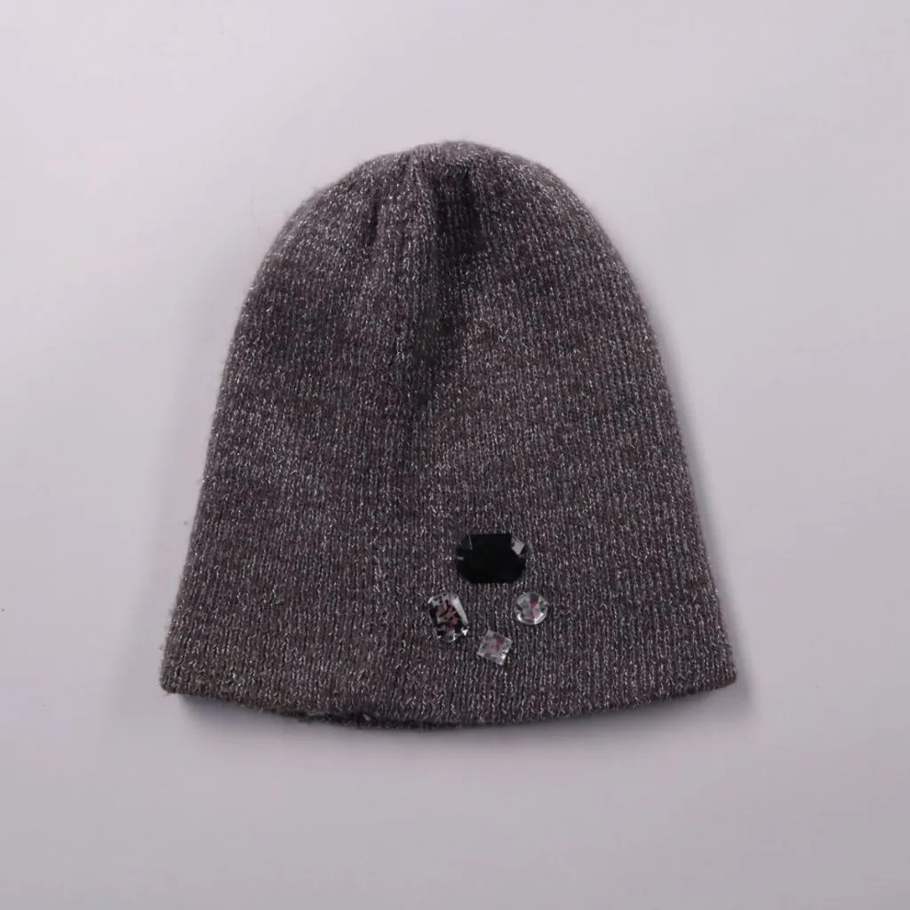 Вязаная шапка с декоративными стразами, подойдёт для повседневной носки в холодную погоду. Мягкая акриловая пряжа с металлизированной нитью даёт лёгкий блеск и хорошо держит форму.