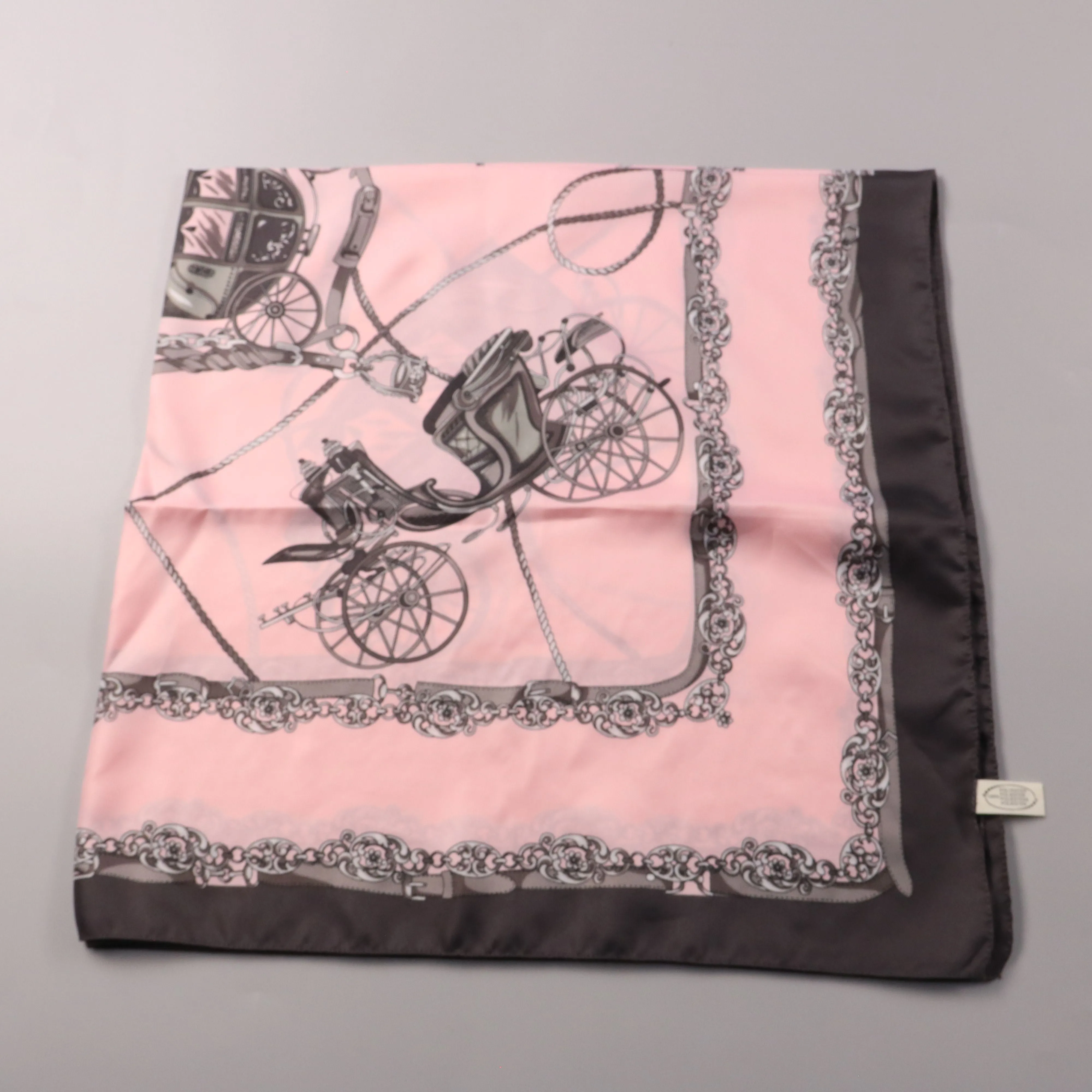 Платок из полиэстера с принтом в виде кареты и цепочек, в розово-чёрной гамме с контрастной окантовкой. Подойдёт для носки на шее, на голове или как аксессуар на сумку в повседневных и более собранных образах. Практичен в уходе: материал лёгкий и быстр...