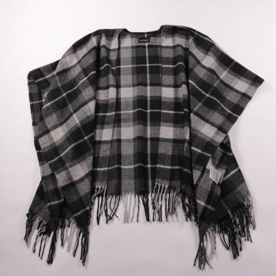 Палантин Your Sixth Sense в серо-чёрную клетку с бахромой по краю. Подойдёт для прохладной погоды и многослойных образов, можно носить как шарф или накидку. Смесовая ткань с шерстью хорошо сохраняет тепло.