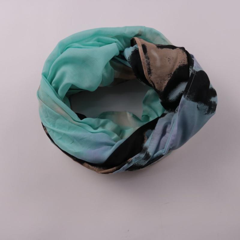 Шарф-снуд ONLY из тонкой ткани с абстрактным принтом в бирюзово-голубой гамме. Подойдёт для повседневных образов в межсезонье и прохладными летними вечерами. Удобен тем, что надевается одним движением и не развязывается за счёт замкнутой формы.