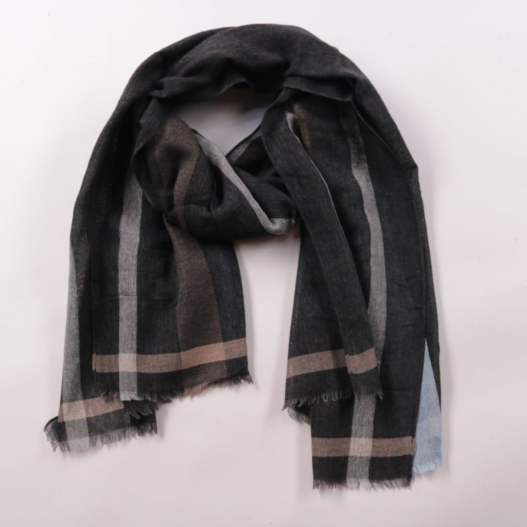 Шарф Fraas в тёмной гамме с контрастными полосами и бахромой по краям. Подойдёт для повседневных образов в прохладную погоду и легко сочетается с однотонной верхней одеждой. Практичный плюс — лёгкий, но добавляет тепла и защищает шею от ветра.