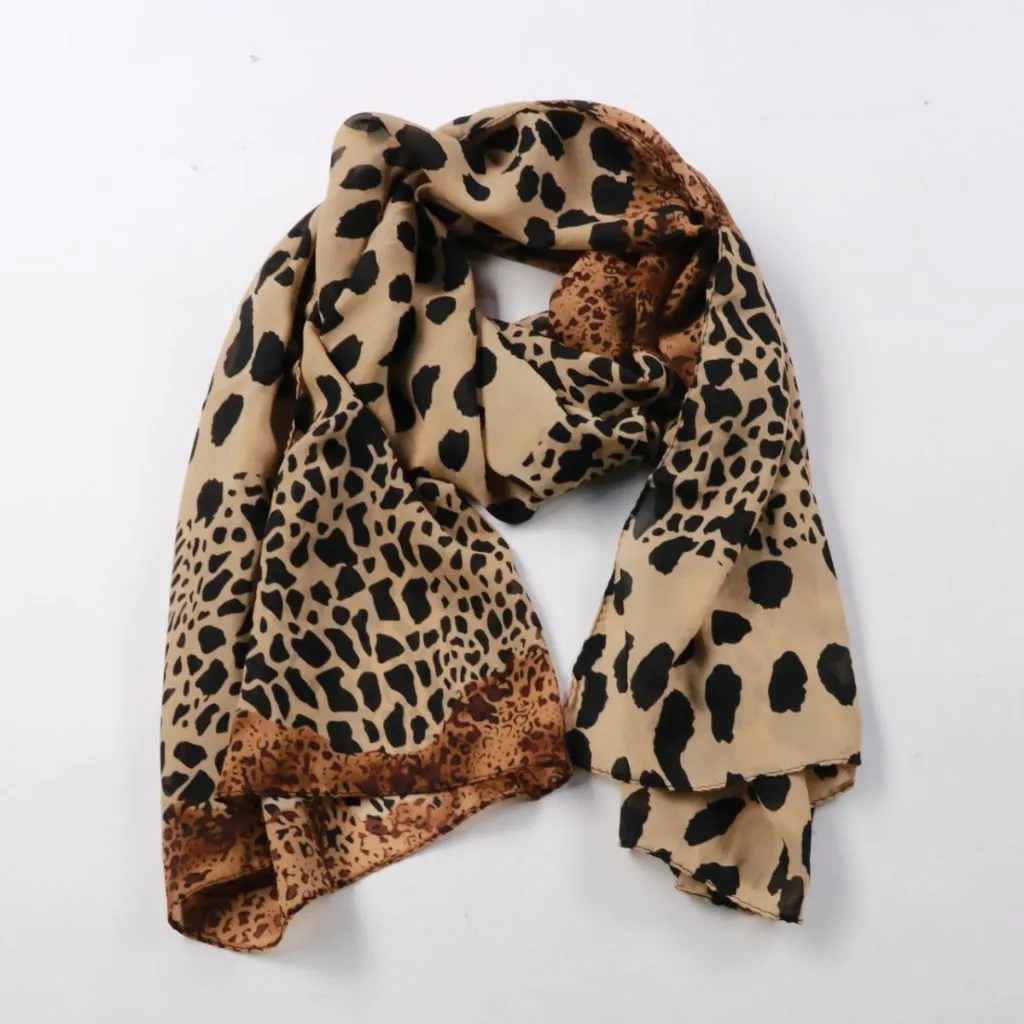Лёгкий шарф с анималистичным принтом (леопард), без указанного бренда. Подойдёт для повседневных образов и как акцент к однотонной верхней одежде в межсезонье или летом. Удобно носить на шее или накидывать на плечи — легко складывается и почти не заним...