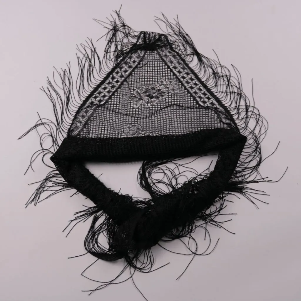 Женский кружевной платок-треугольник чёрного цвета с декоративной бахромой по краю. Подойдёт для образов в стиле ретро и для вечерних выходов, можно носить на голове или на шее. Лёгкий и компактно складывается, удобно брать с собой.