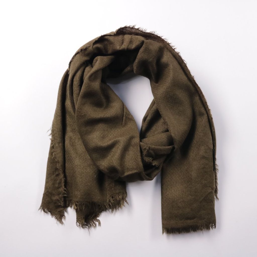 Шарф Zara Accessories однотонного оливково-зелёного цвета с необработанным краем и лёгкой бахромой. Подойдёт для повседневных образов в прохладную погоду и легко сочетается с верхней одеждой нейтральных оттенков. Удобно драпируется и добавляет тепла бе...