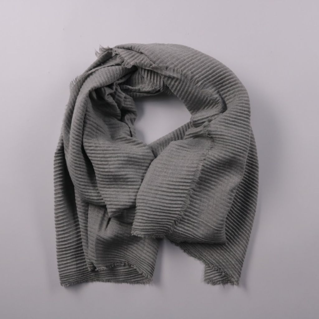 Шарф Primark в сером цвете с фактурой в рубчик и необработанными краями. Подойдёт для повседневной носки в прохладную погоду, можно носить как шарф или накинуть на плечи. Практичен в уходе и быстро сохнет благодаря полиэстеру.