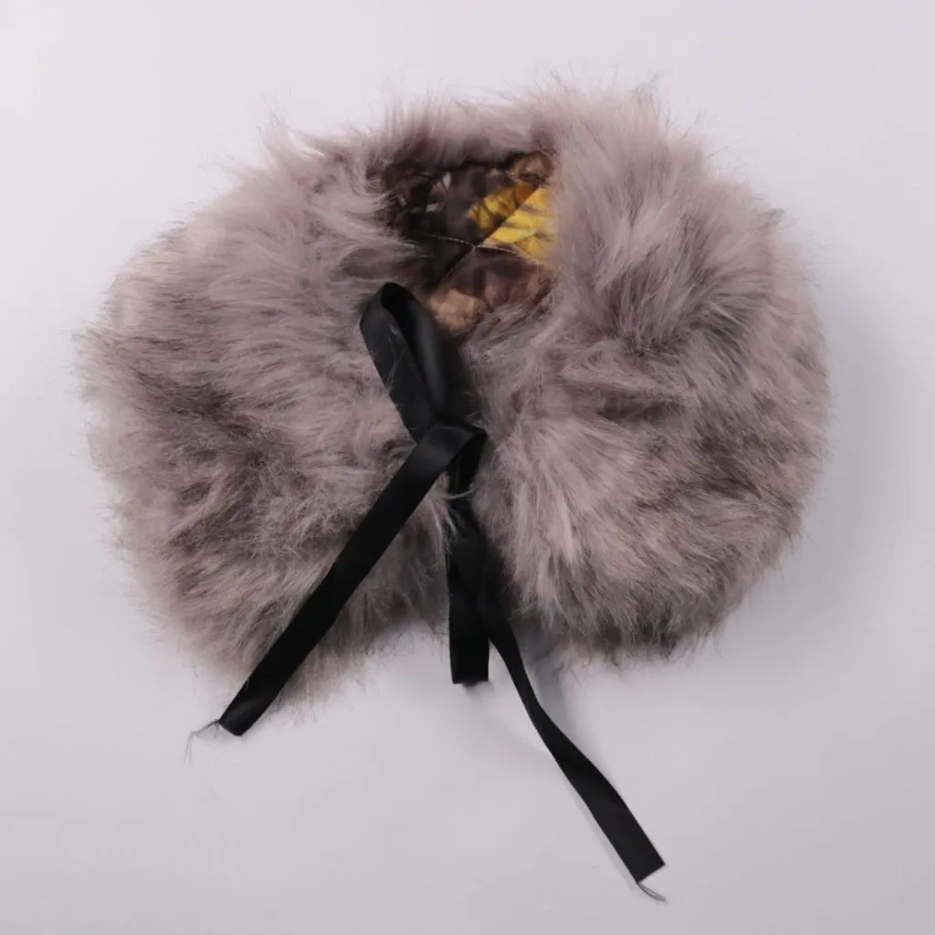 Меховой воротник серого цвета с завязками-лентами, подходит для пальто или куртки в холодную погоду. Можно носить как акцентный аксессуар на выход или для повседневных образов. Ленты позволяют быстро регулировать посадку по шее.