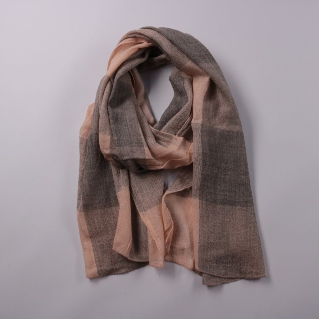 Шарф Review в крупную клетку в серо-бежево-розовой гамме. Подойдёт для повседневных образов в прохладную погоду и легко сочетается с однотонной верхней одеждой. За счёт мягкой ткани комфортно драпируется и можно носить разными способами.