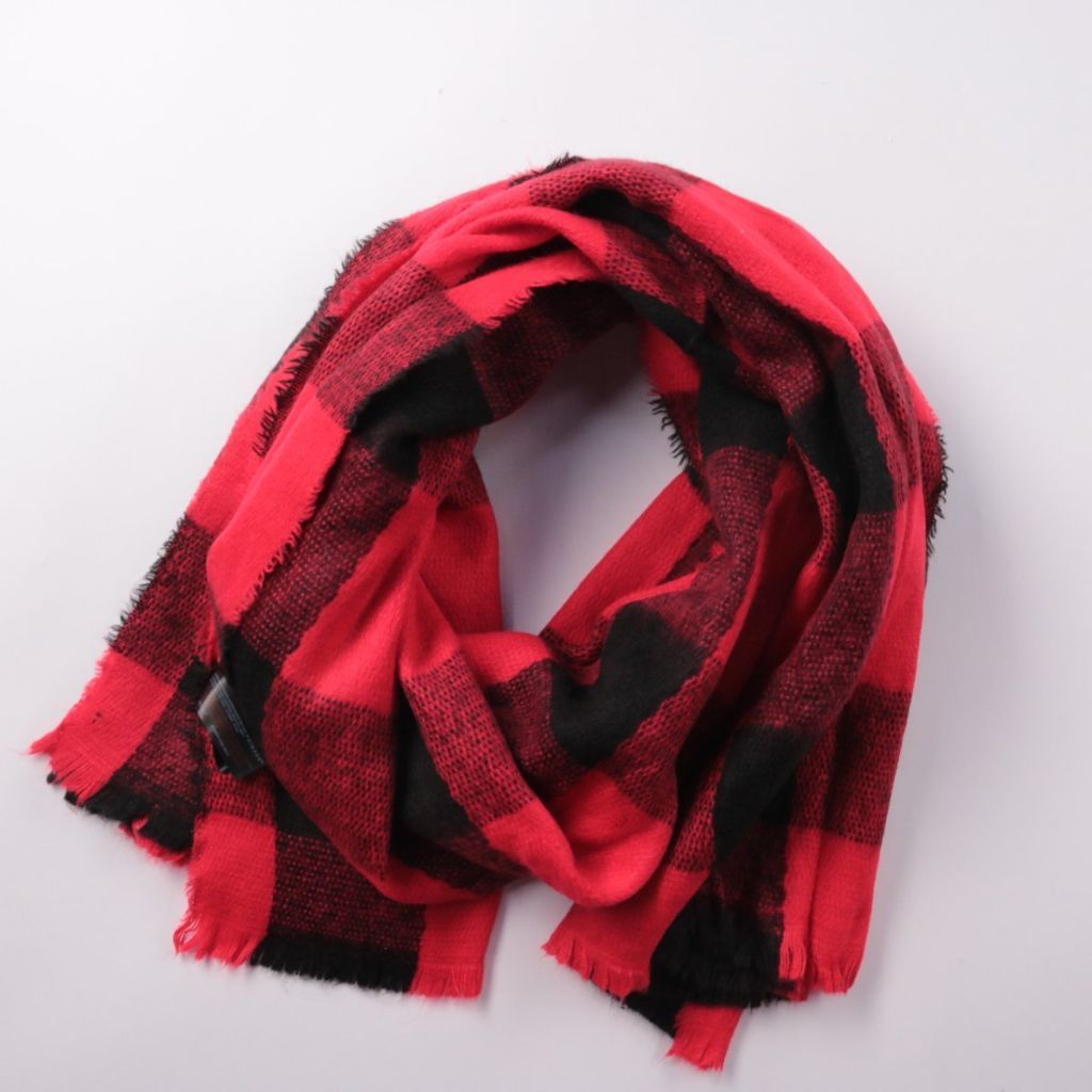 Шарф Primark в красно-чёрную клетку с бахромой по краям. Подойдёт для повседневной носки осенью и зимой, хорошо сочетается с однотонной верхней одеждой. Удобно укутываться за счёт мягкого полотна и широкого формата.