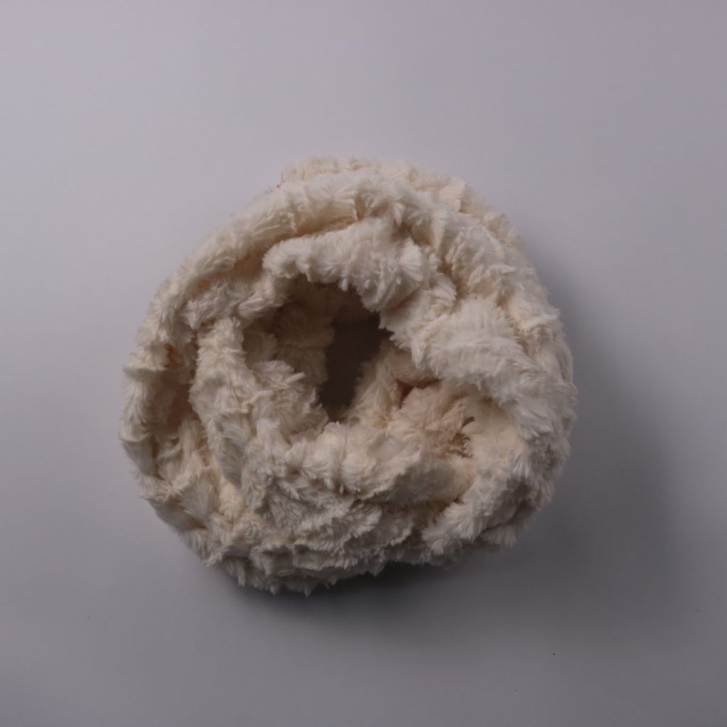 Мягкий меховой снуд Mangwn молочного/бежевого оттенка. Подойдёт для зимних прогулок и повседневных образов, хорошо закрывает шею от ветра. Практичный вариант — быстро надевается и не требует завязывания.