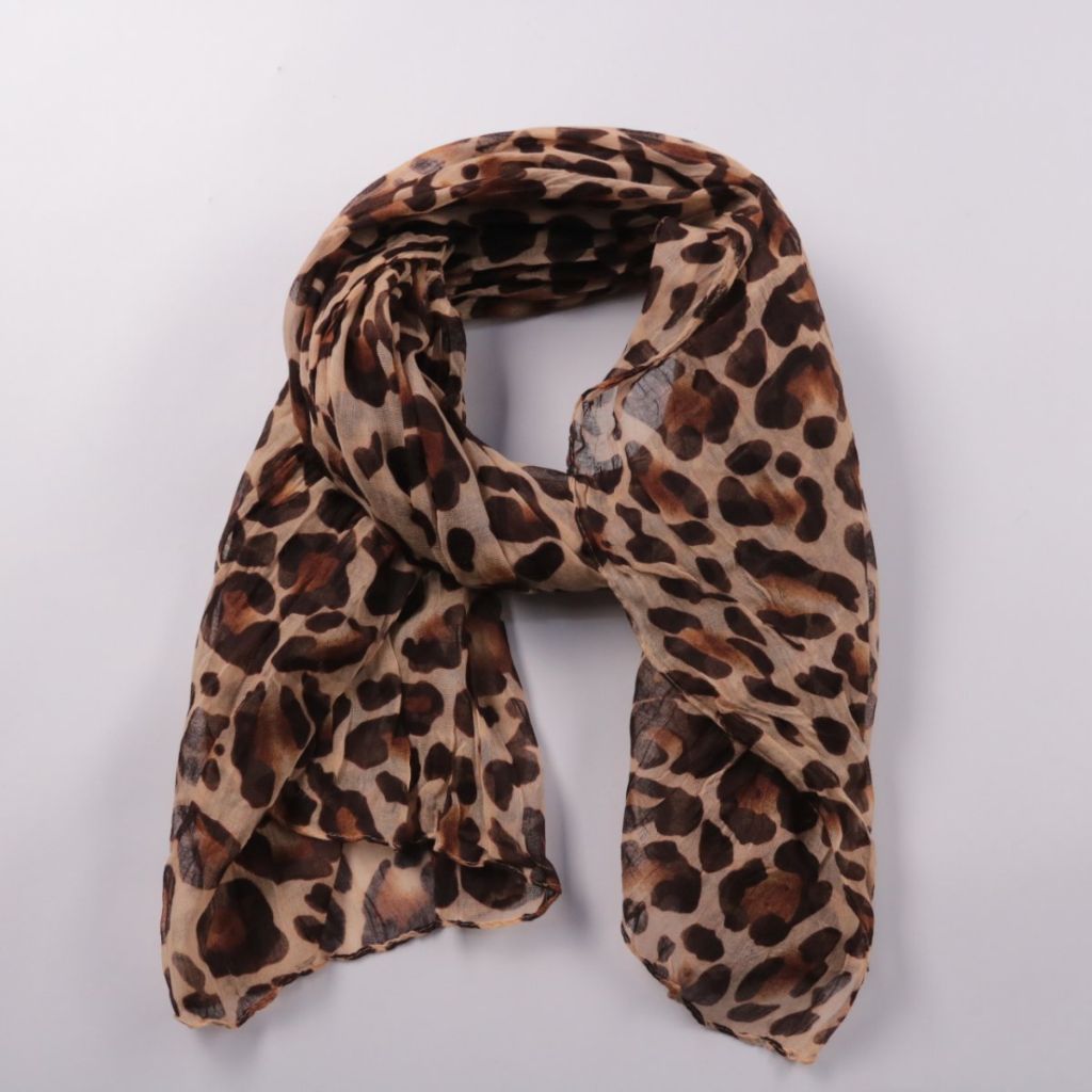Шарф с леопардовым принтом, лёгкий и мягко драпируется. Подойдёт для повседневных образов и как акцент к однотонной верхней одежде в демисезон и прохладные вечера. Удобно носить разными способами и компактно складывается в сумку.