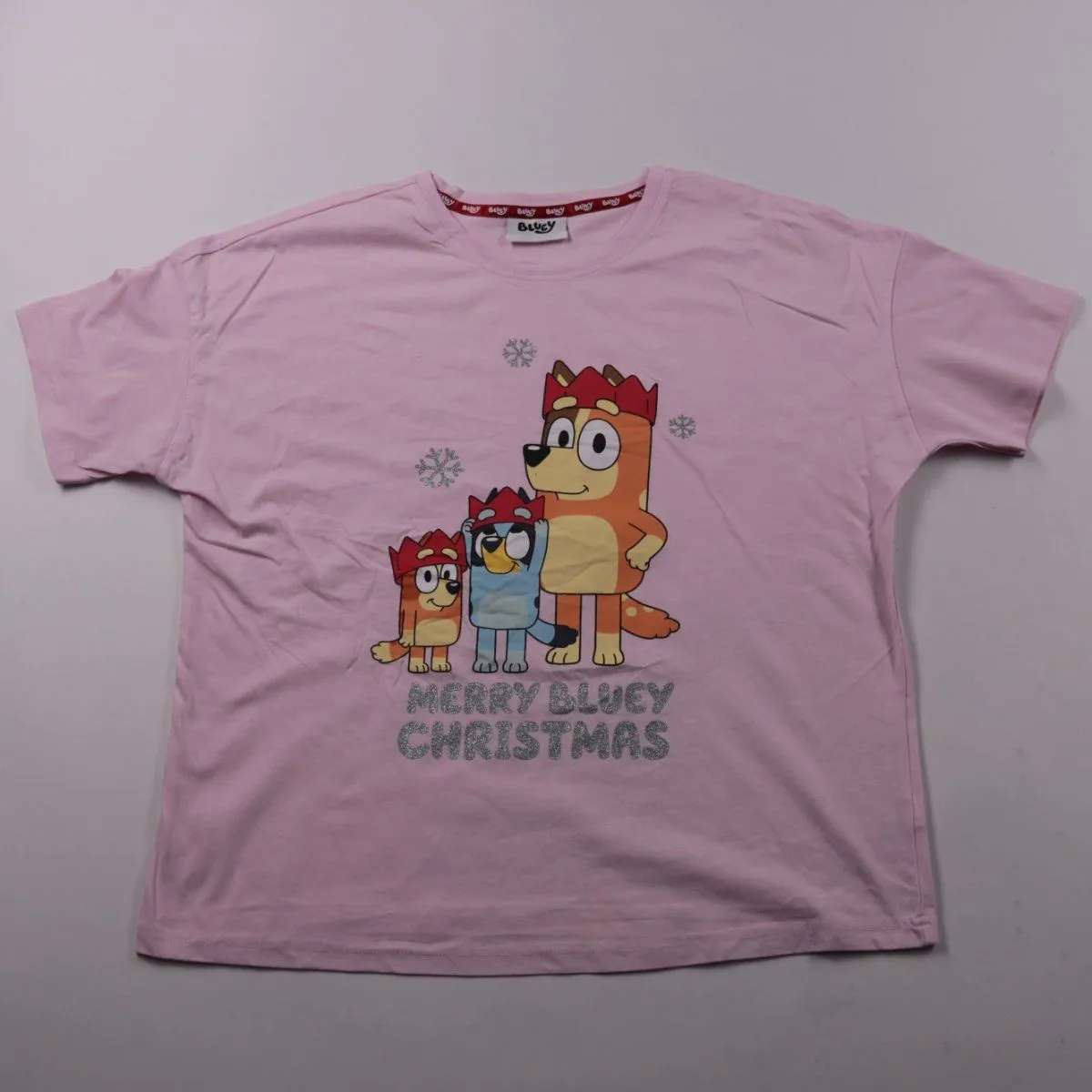 Розовая футболка George с принтом Bluey «Merry Bluey Christmas» и коротким рукавом. Подойдёт для повседневной носки в школу или на прогулки. Хлопковая ткань приятная к телу и хорошо дышит.