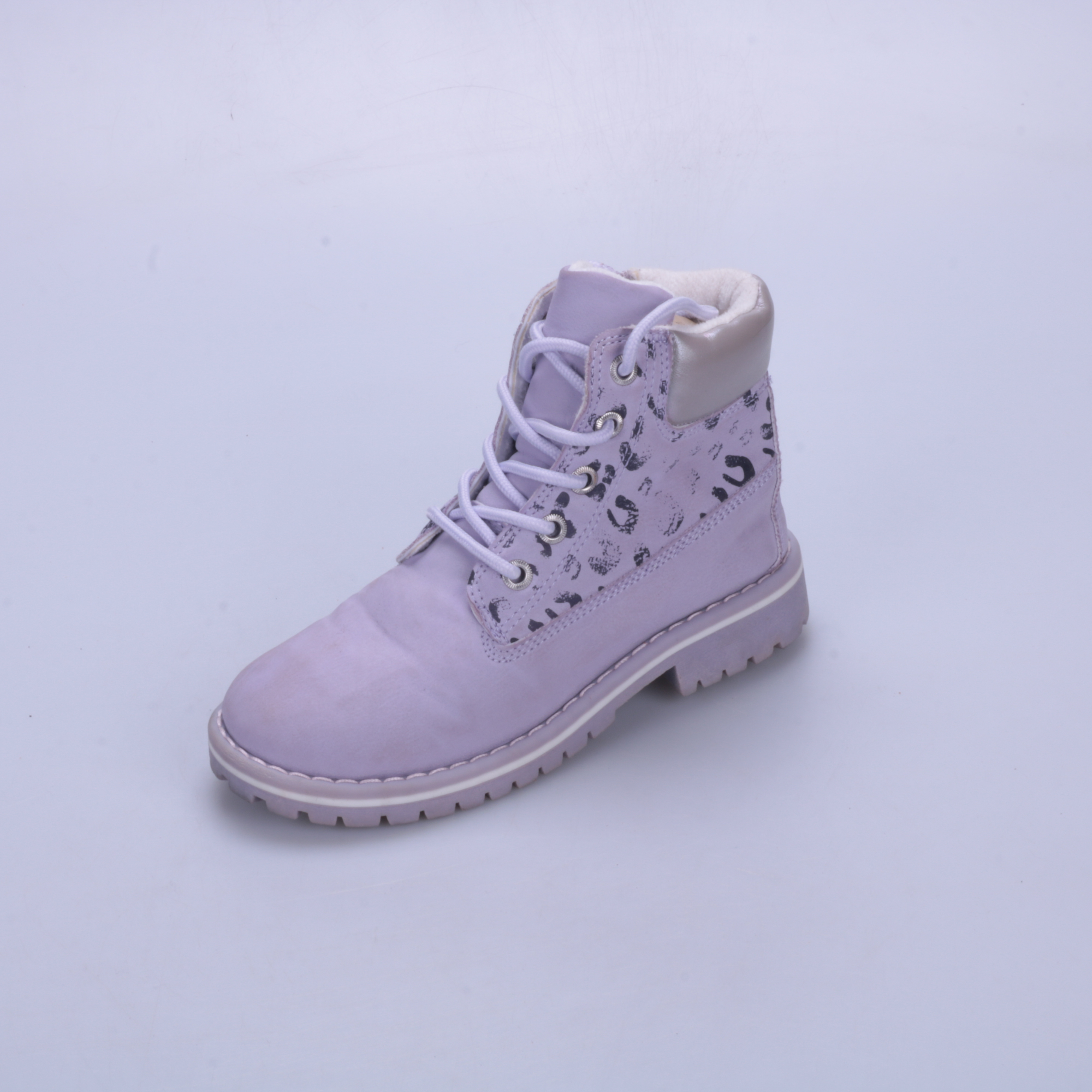 Детские ботинки на шнуровке с боковой молнией, мягким утеплённым воротником и принтом на голенище. Подойдут для прогулок в прохладную погоду весной и осенью. Рифлёная подошва даёт более уверенное сцепление с поверхностью.