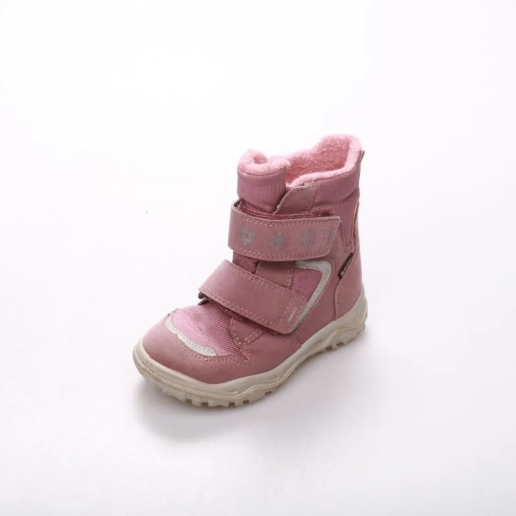 Зимние ботинки Superfit розового цвета с утеплённой подкладкой и застёжками на липучках. Подойдут для повседневных прогулок в холодную погоду, удобны для самостоятельного надевания ребёнком. Рельефная подошва помогает лучше держаться на скользкой повер...