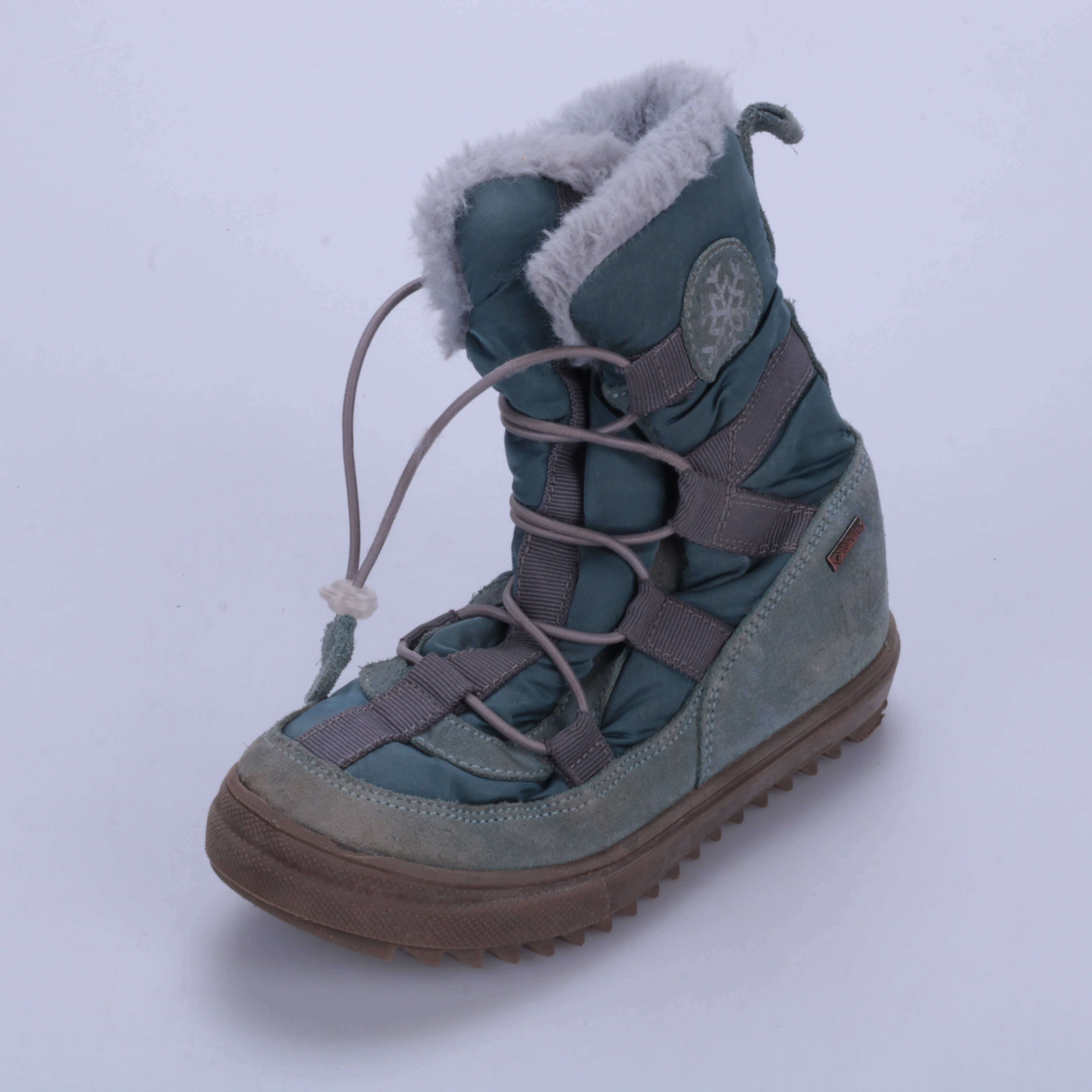 Зимние ботинки для девочки с утеплённой меховой окантовкой и шнуровкой на утяжке. Подойдут для прогулок в холодную погоду, верх из текстиля с замшевыми вставками. Рифлёная подошва даёт более уверенное сцепление на зимних дорожках.