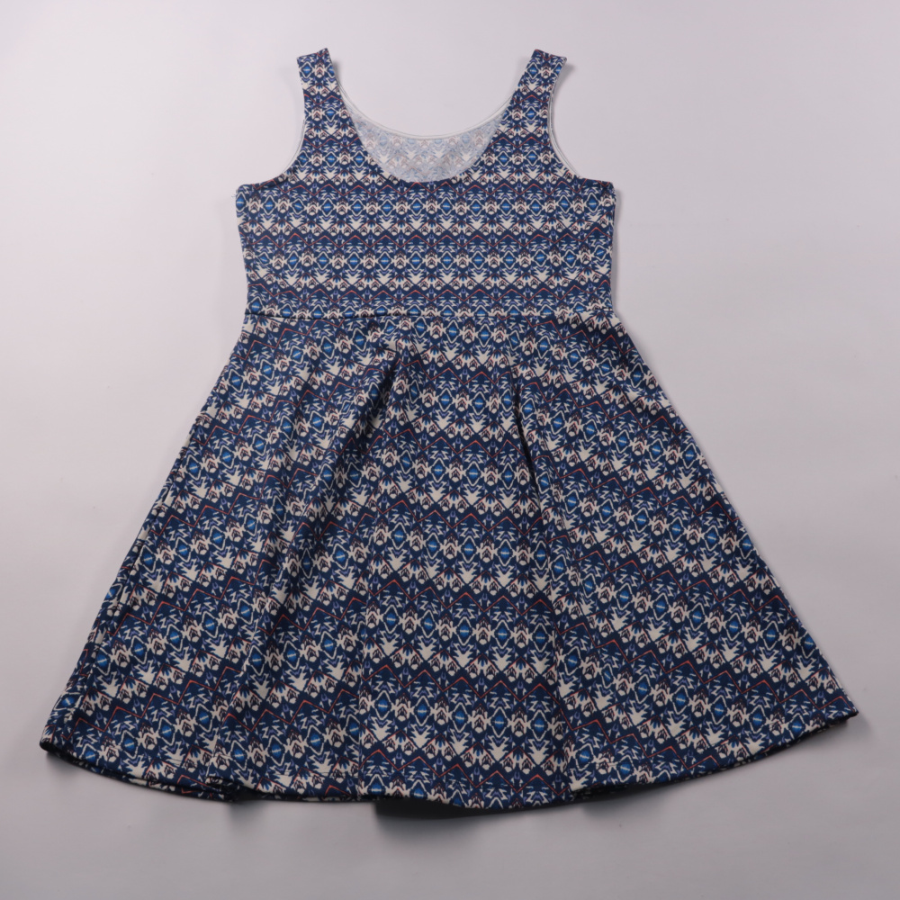 Летнее платье без рукавов с геометрическим принтом, подойдёт для прогулок и праздников. Юбка со сборкой даёт свободу движений и красиво смотрится в носке. Ткань лёгкая и удобная, платье легко стирается и быстро сохнет.