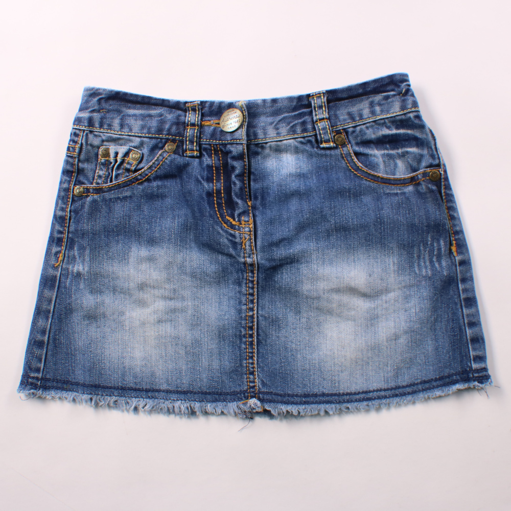 Джинсовая юбка Next синего цвета с лёгкими потертостями и необработанным краем. Подойдёт для повседневной носки летом и в тёплую погоду с футболкой или рубашкой. Плотный хлопковый деним хорошо держит форму и удобен в уходе.