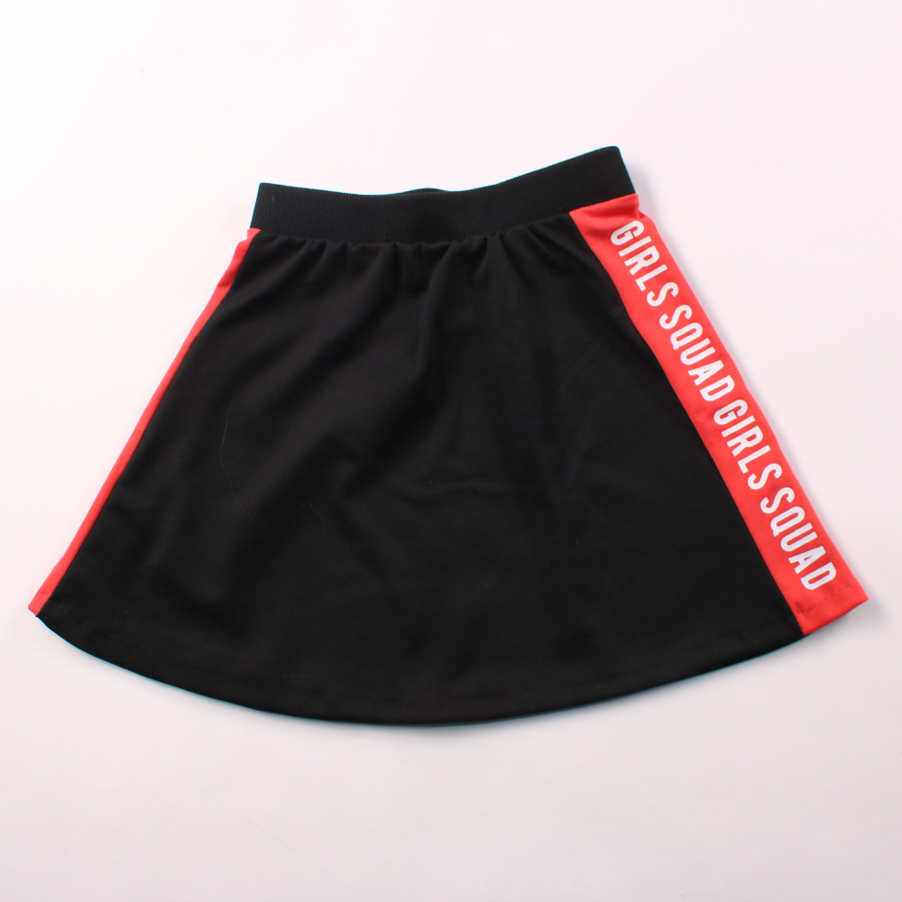 Юбка Girls чёрного цвета со вставками и надписью по бокам, на широкой эластичной резинке. Подойдёт для школы, прогулок и активных занятий, хорошо сочетается с футболками и худи. Плотная ткань с добавлением эластана тянется и не сковывает движения.