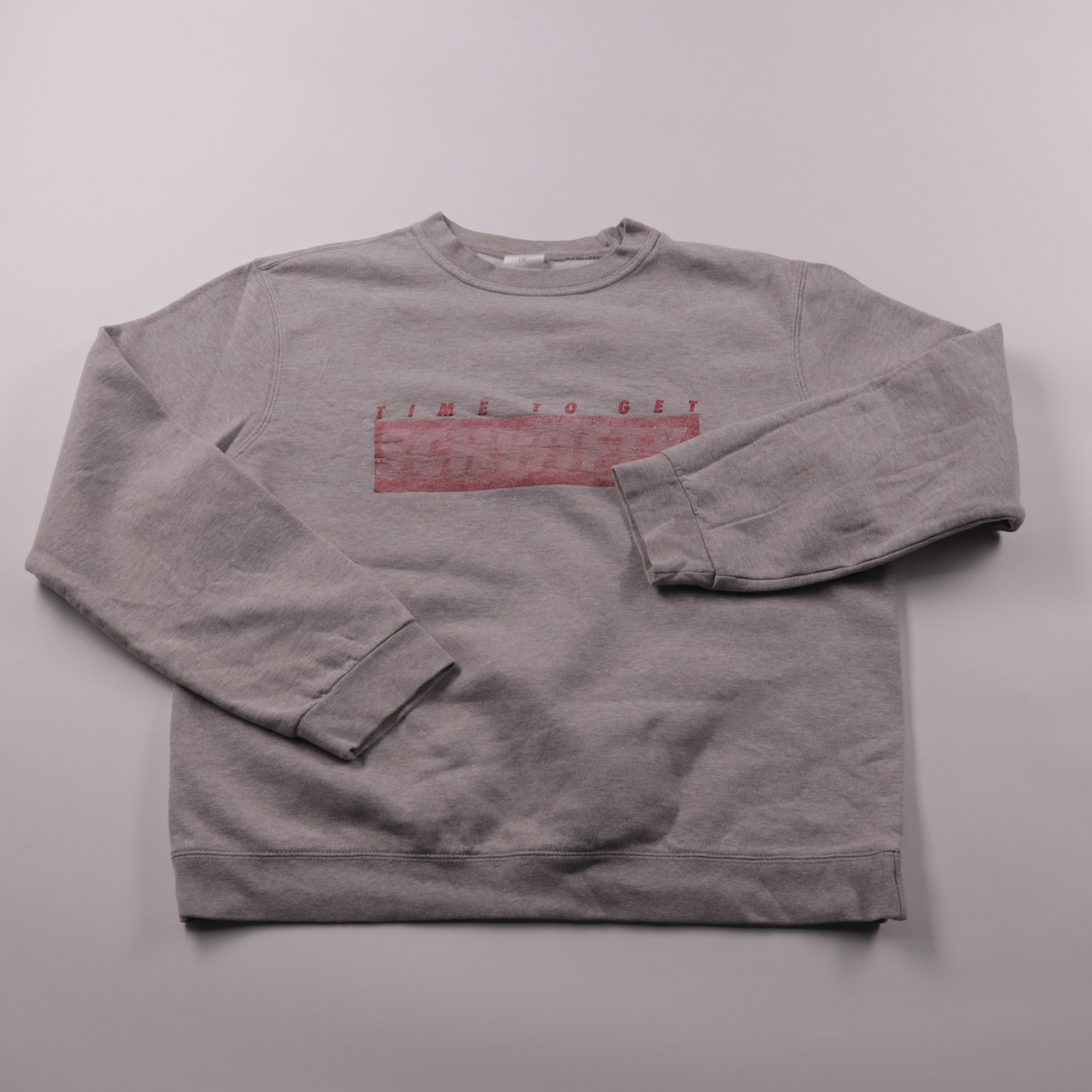 Свитшот B&C серого цвета с принтом на груди, мягкий внутри. Подойдёт для школы, прогулок и повседневной носки в прохладную погоду. Практичен тем, что легко сочетается с джинсами и спортивными брюками и комфортно сидит за счёт трикотажных манжет.