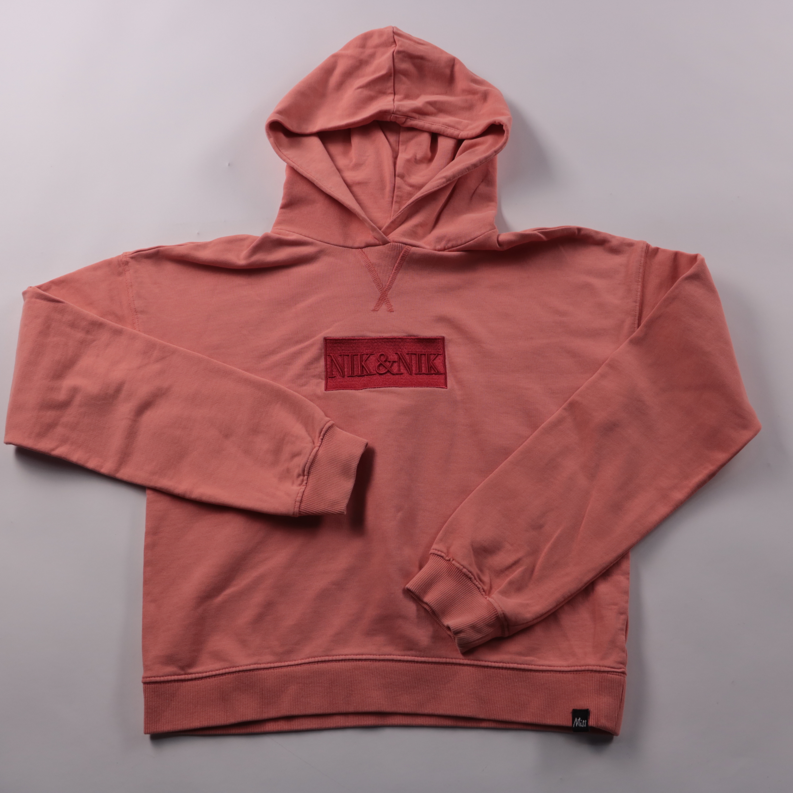 Худи Nik&Nik пыльно-розового цвета с капюшоном и вышивкой-логотипом на груди. Подойдёт для школы, прогулок и повседневных образов в прохладную погоду. Натуральный хлопок приятен к телу и хорошо пропускает воздух.
