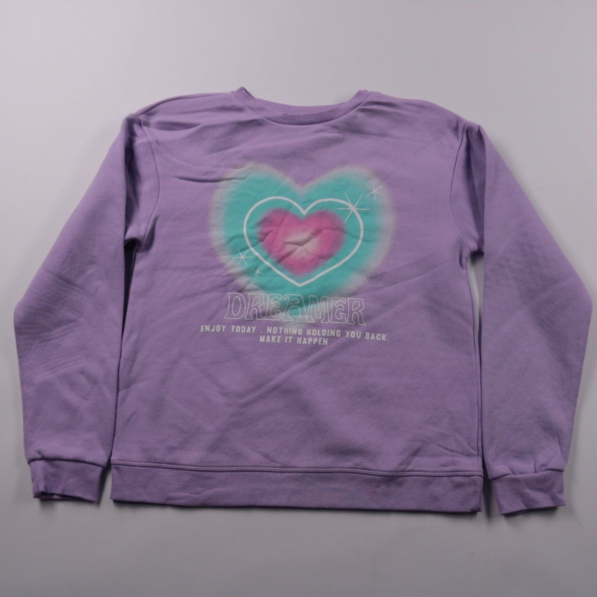 Толстовка Primark лавандового цвета с принтом «Dreamer» и сердцем. Подойдёт для школы и прогулок в прохладную погоду, мягкая изнутри. Практичный вариант: легко комбинируется с джинсами и спортивными брюками.