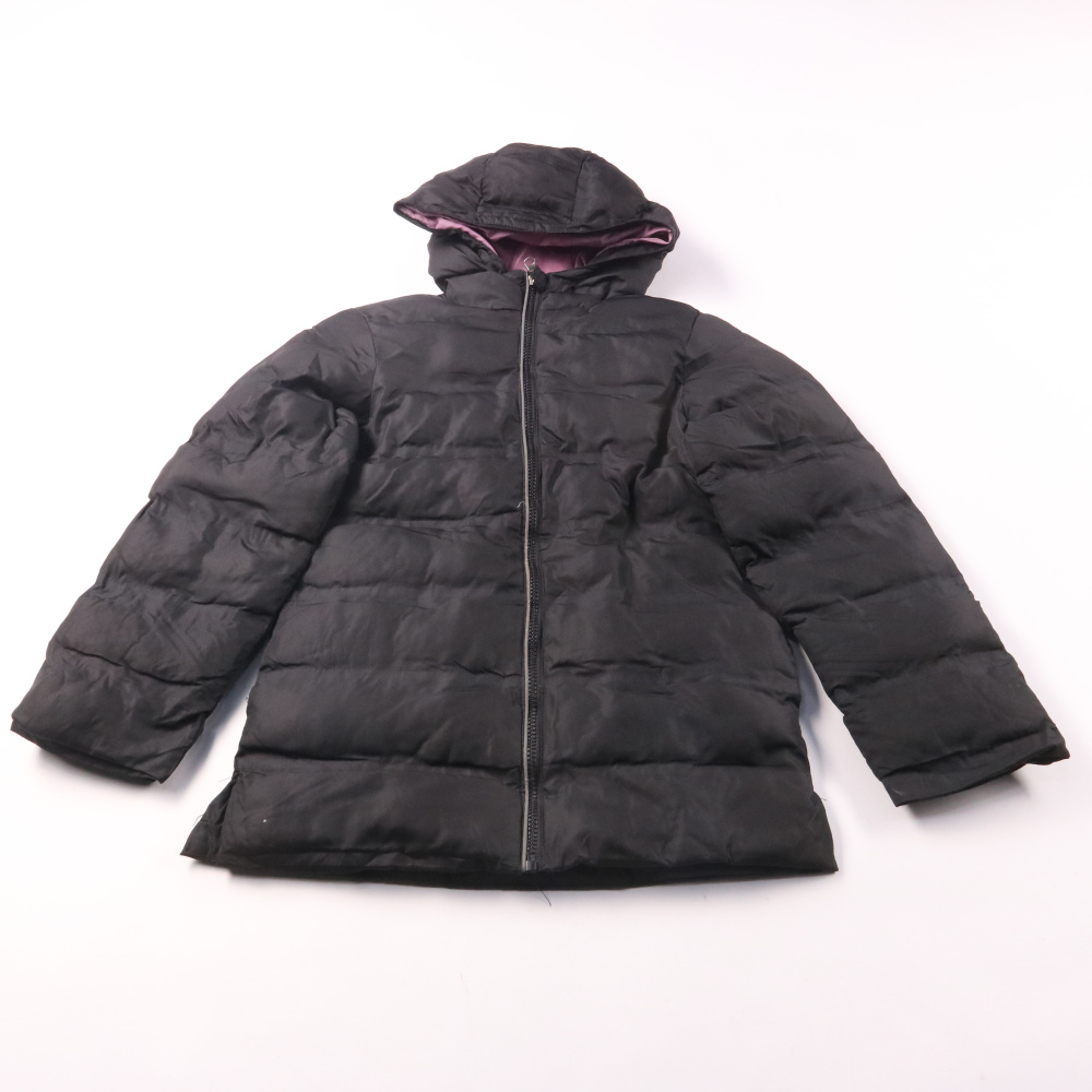 Детский пуховик Pocopiano чёрного цвета с капюшоном и застёжкой на молнию. Подойдёт для зимних прогулок и повседневной носки, внутри контрастная розовая подкладка. Лёгкий по весу и хорошо удерживает тепло за счёт стёганого утеплителя.