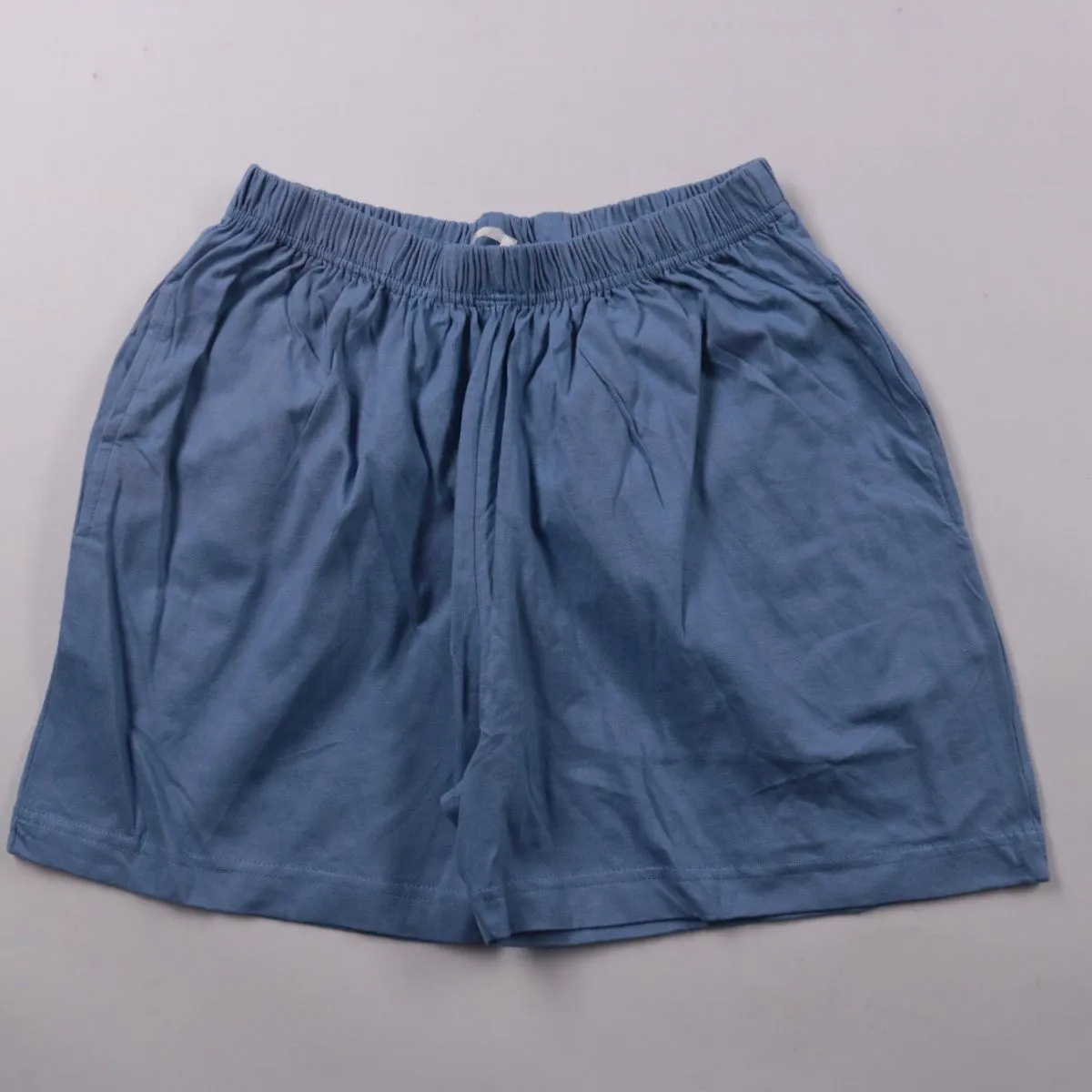 Хлопковые шорты для мальчика без бренда, голубого цвета, с эластичным поясом и шнурком. Подойдут для лета, дома и прогулок. Натуральный хлопок хорошо дышит и легко стирается.