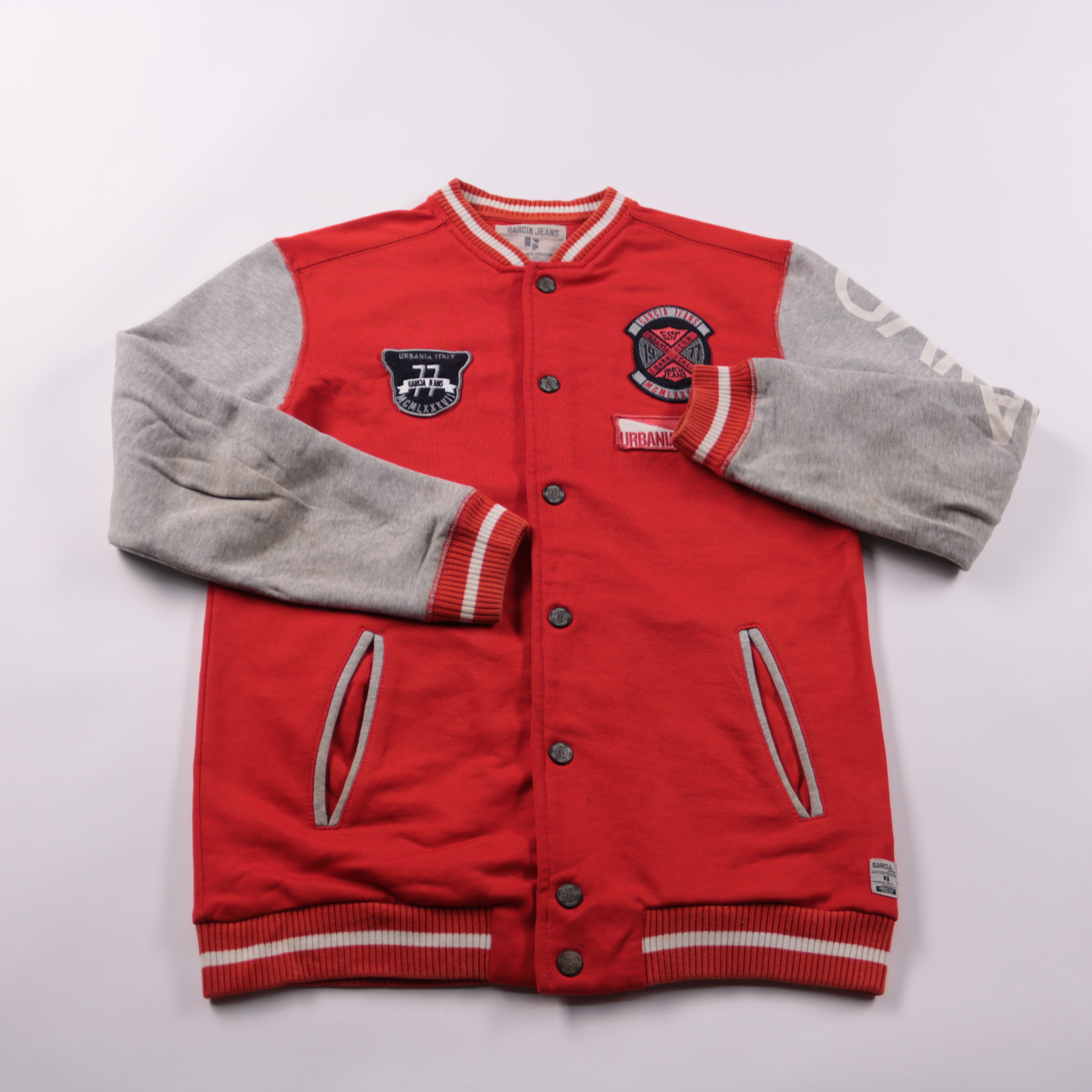 Куртка Garcia Jeans в стиле бомбер: красный корпус и серые рукава, застёжка на кнопки и трикотажные манжеты. Подойдёт для школы и прогулок в прохладную погоду, есть два боковых кармана. Материал мягкий и удобный, легко сочетать с джинсами и спортивной ...