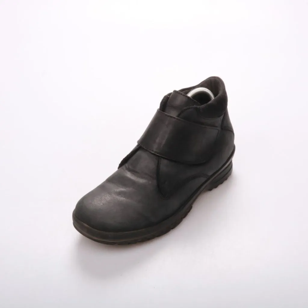 Мужские демисезонные ботинки Hartjes из чёрной натуральной кожи, застёжка на широкую липучку. Подойдут для повседневной носки в городе в прохладную погоду. Удобно быстро надевать и снимать, подошва с рельефом лучше держит на мокрой поверхности.