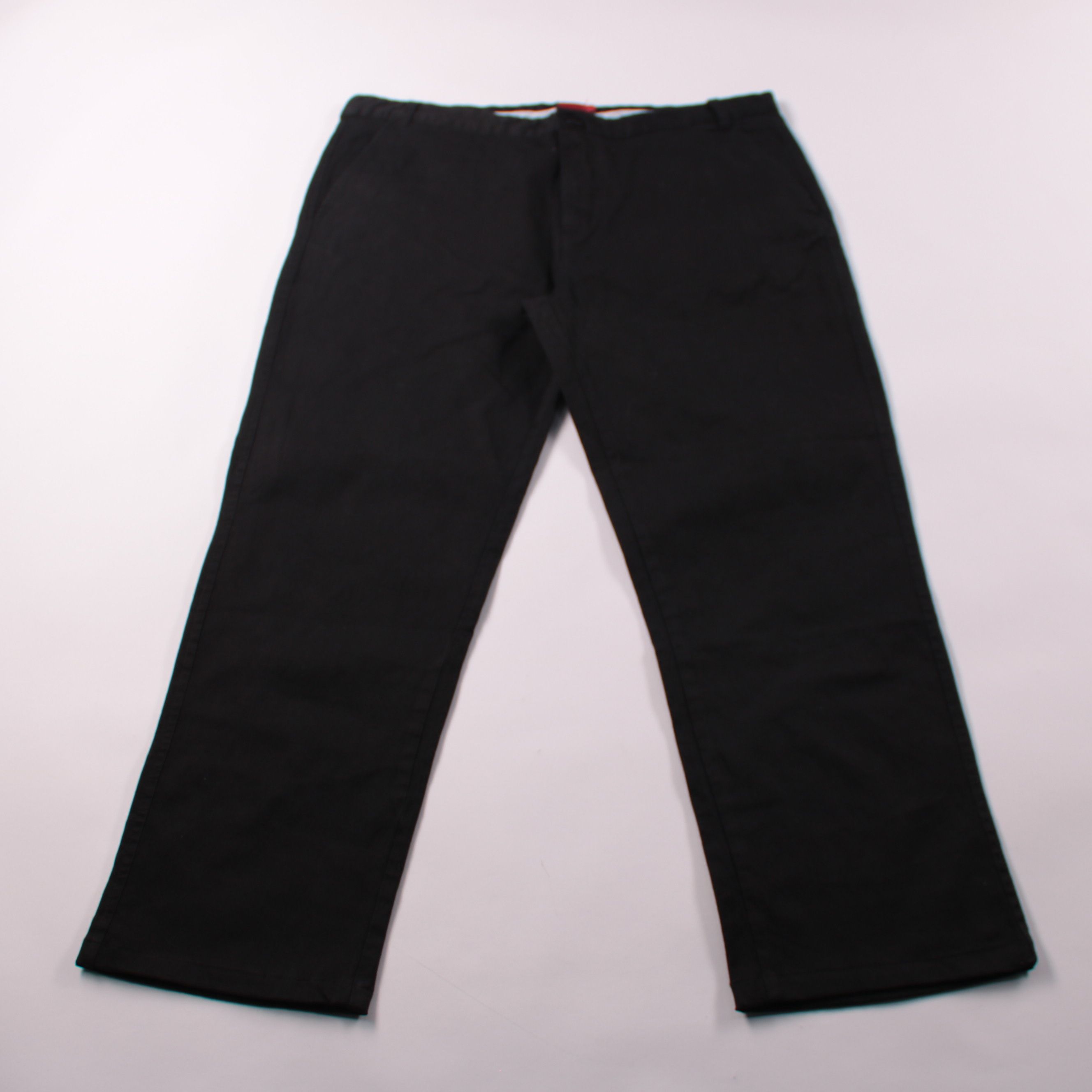Мужские брюки Tissaia Basics в чёрном цвете, прямого кроя со слегка расклешёнными штанинами. Подойдут для повседневной носки и более строгих образов с рубашкой или джемпером. Хлопковая ткань с добавлением эластана лучше тянется и комфортнее в движении.