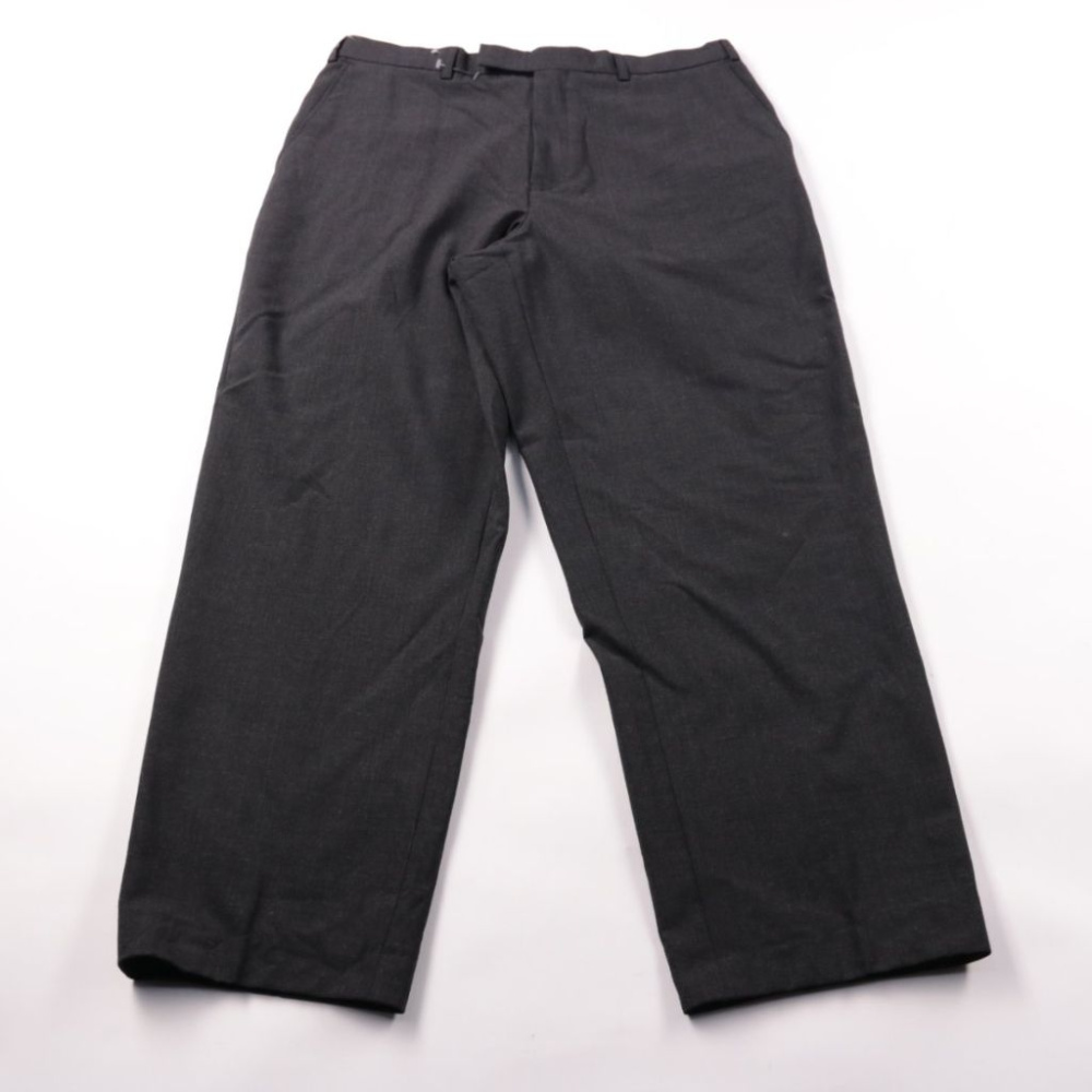 Мужские классические брюки River Island в чёрном цвете, размер W36 L32, с аккуратной посадкой и прямыми штанинами. Подойдут для офиса и мероприятий, легко сочетаются с рубашкой или водолазкой. Смесь шерсти с полиэстером и эластаном держит форму и немно...