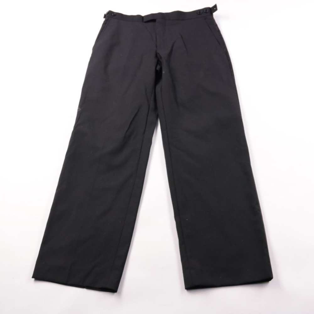 Мужские классические брюки прямого кроя в чёрном цвете, подойдут для офиса и мероприятий. Ткань со смесью шерсти (70% шерсть, 30% полиэстер), посадка указана как short. Практичны в носке и держат форму, уход — только химчистка.