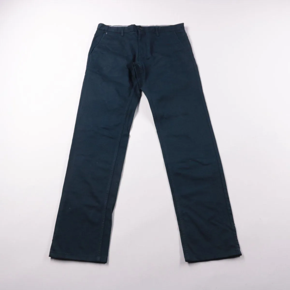 Мужские брюки Zara Man Basic Collection тёмно-синего цвета, прямой посадки. Подойдут для офиса и повседневных образов с рубашкой или футболкой. Плотная ткань хорошо держит форму и не требует сложного ухода.