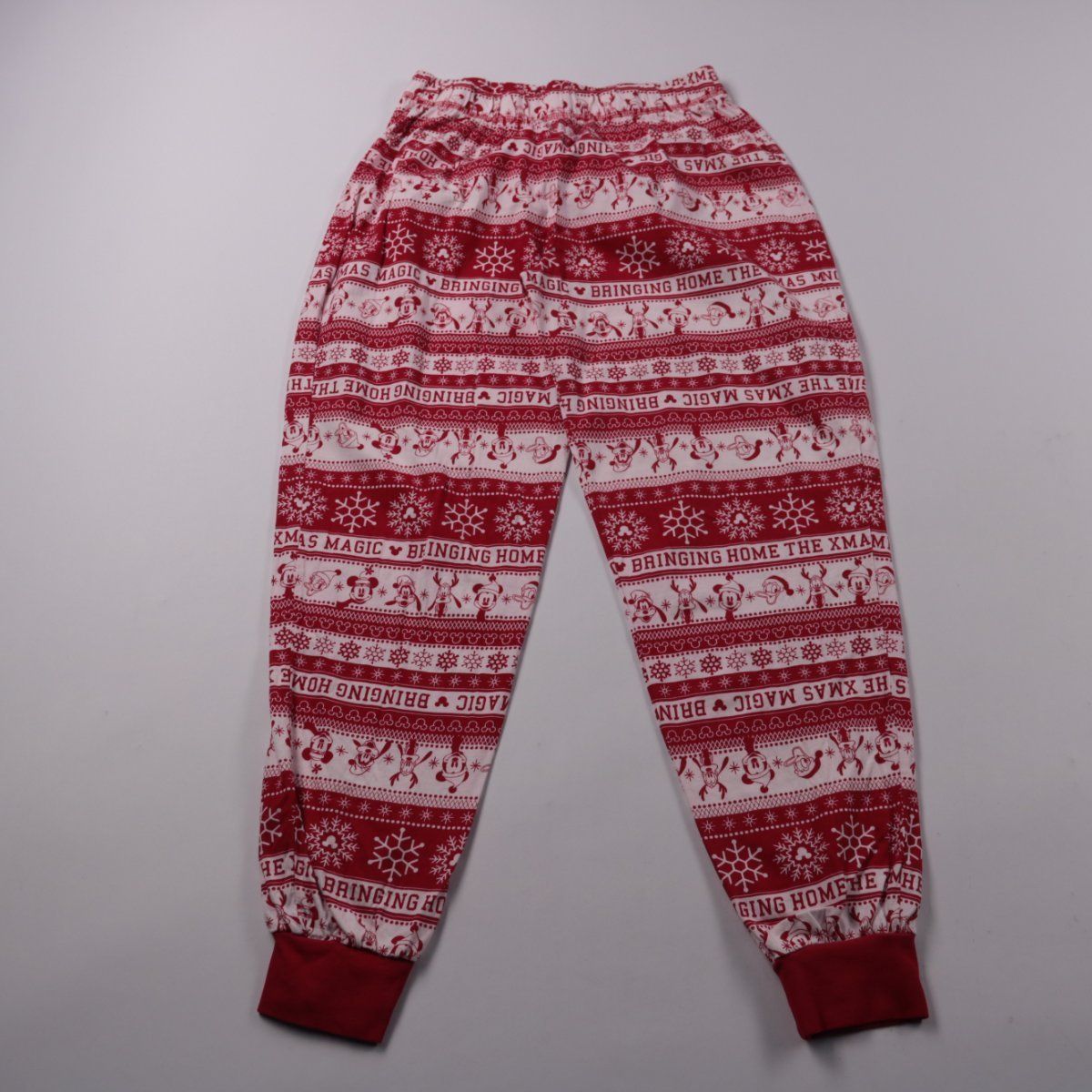 Домашние брюки George из коллекции Disney Mickey and Friends с новогодним принтом в красно-белой гамме. Подойдут для сна и отдыха дома в прохладные вечера, пояс на резинке и манжеты снизу хорошо держат посадку.