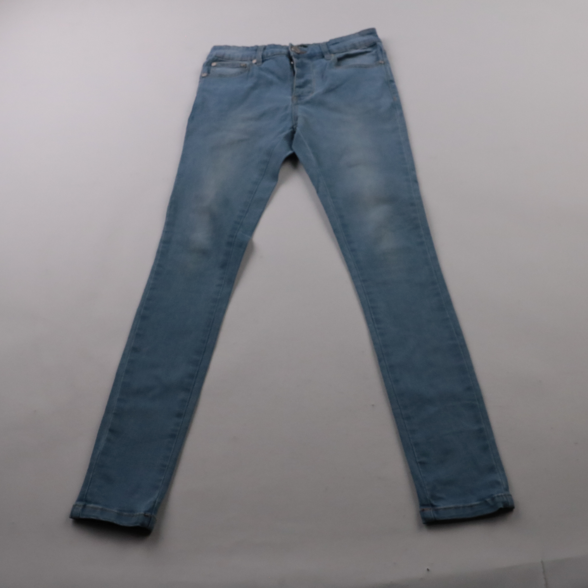 Мужские джинсы BoohooMAN светло-синего цвета с лёгким эффектом потертости, модель с узкими штанинами. Подойдут для повседневных образов и прогулок в любое время года. Эластичный деним хорошо тянется и комфортно сидит по фигуре.