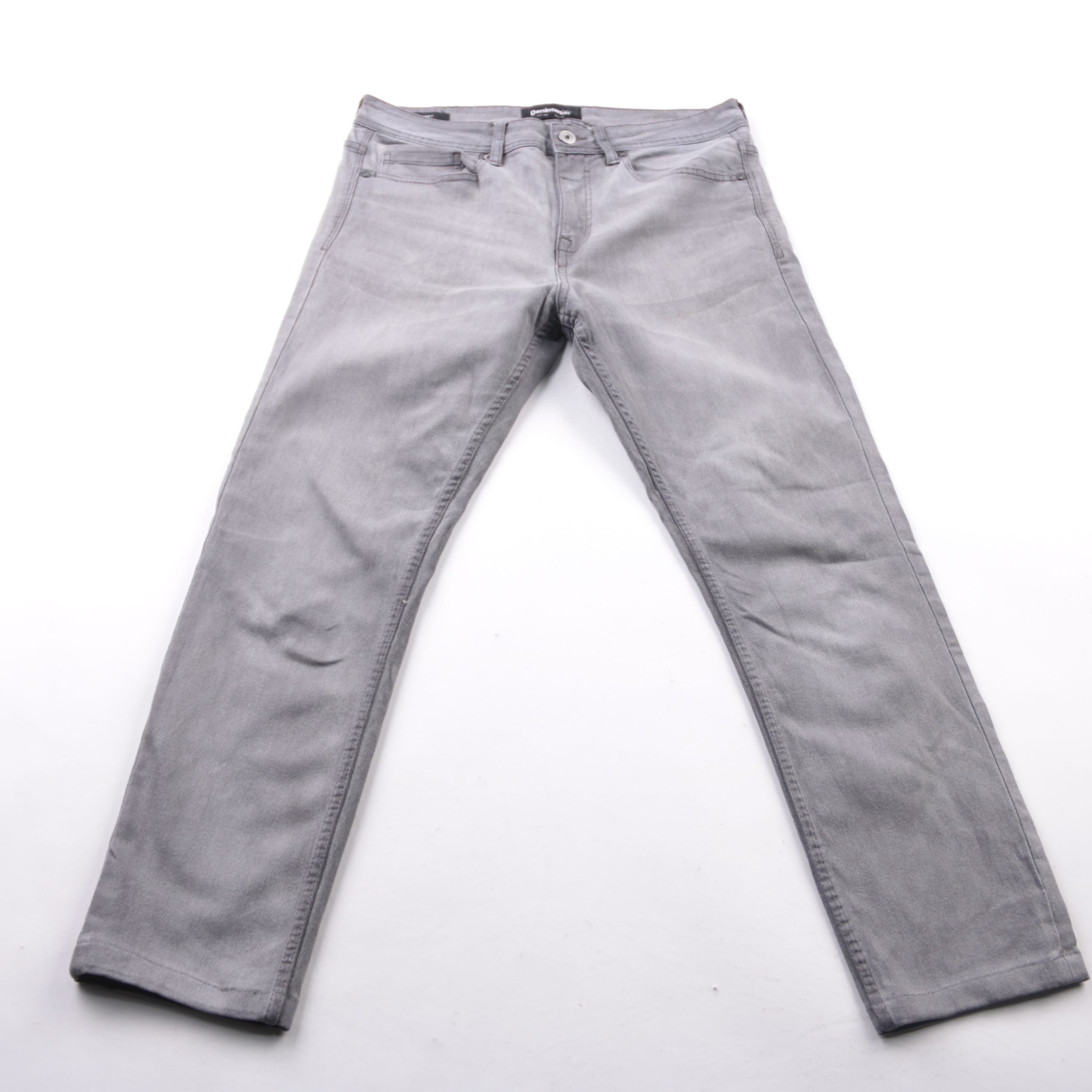 Мужские джинсы Denimwear в светло-сером цвете, базовая модель на каждый день. Подойдут для повседневных образов и офиса с нестрогим дресс-кодом. Плотный деним со стрейчем комфортно садится и не сковывает движения.