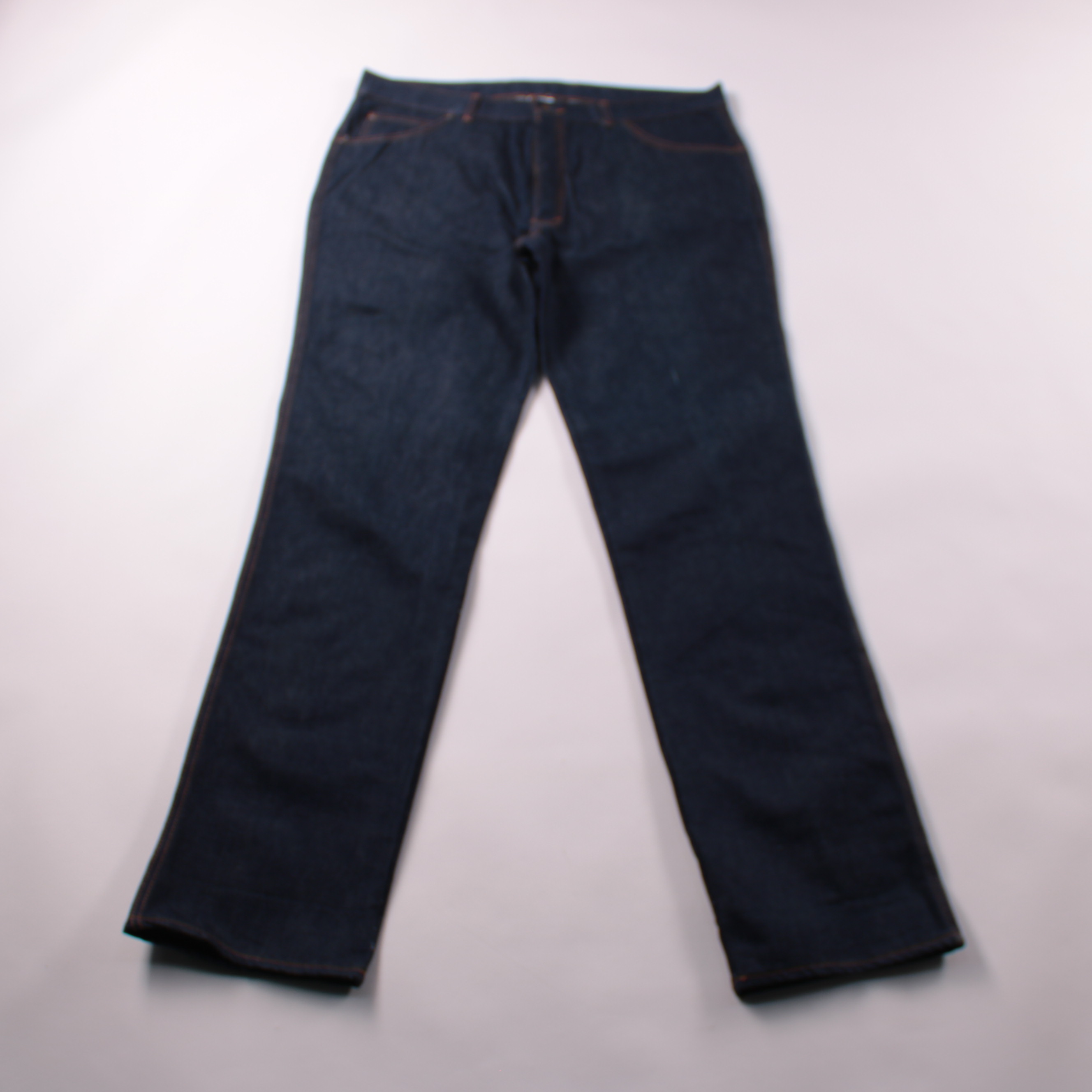Джинсы из плотного тёмно-синего денима с контрастной строчкой. Подойдут для повседневной носки в городе и на работу, легко сочетаются с футболками и рубашками. Практичный плюс — 100% хлопок и износостойкая ткань.
