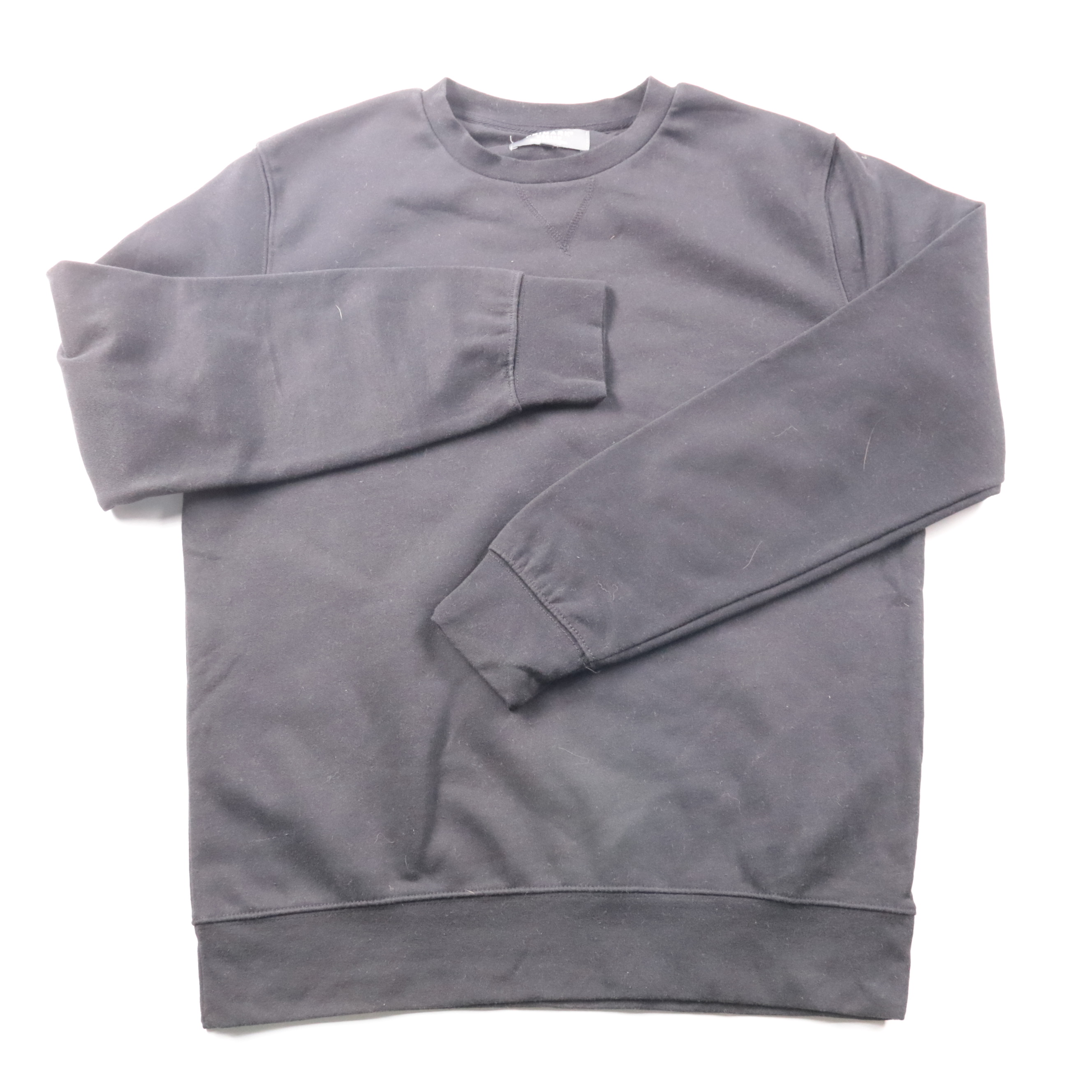 Мужской свитшот Primark в чёрном цвете, базовый однотонный крой с круглым вырезом и манжетами. Подойдёт для повседневной носки и как средний слой в прохладную погоду. Смесовый состав (50% хлопок, 50% полиэстер) практичен в уходе и меньше мнётся.