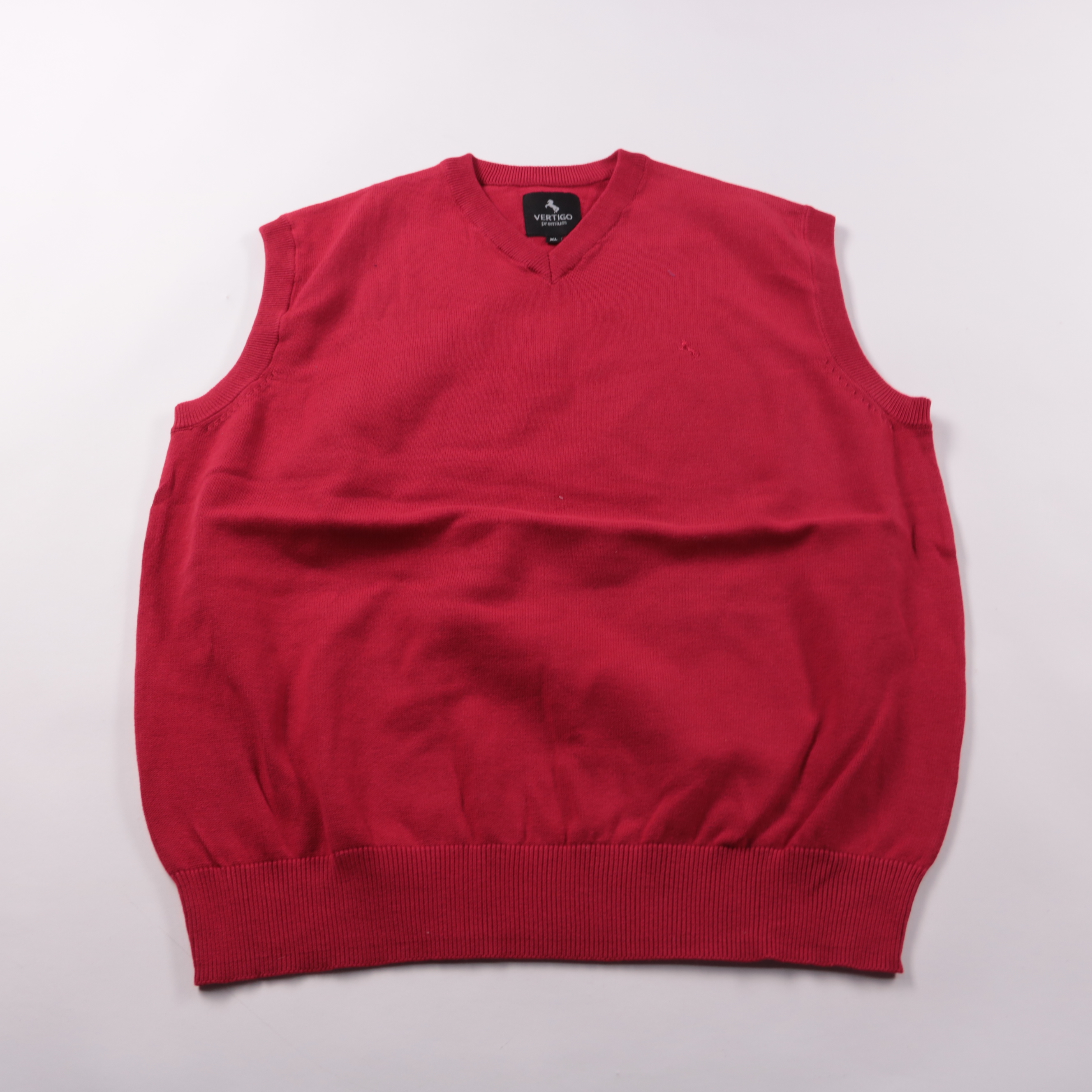 Мужской трикотажный жилет Vertigo Premium красного цвета с V-образным вырезом. Подойдёт для офиса и повседневных образов: удобно носить поверх рубашки или лонгслива в прохладную погоду. Хлопковая основа в составе хорошо дышит, а добавка нейлона делает ...