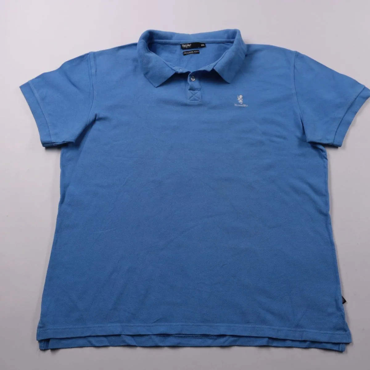 Мужское поло Mezzo голубого цвета из хлопка, классический воротник и короткая планка на пуговицах. Подойдёт для повседневной носки и офиса в стиле casual в тёплую погоду. Хлопковая ткань хорошо дышит и комфортна в течение дня.
