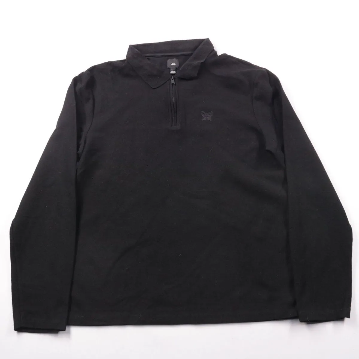 Мужское поло River Island чёрного цвета с длинным рукавом и воротником, застёжка на короткую молнию. Подойдёт для повседневной носки и в офис в стиле casual, легко сочетается с джинсами и брюками. Практичный вариант из 100% хлопка — комфортно носится и хорошо дышит.