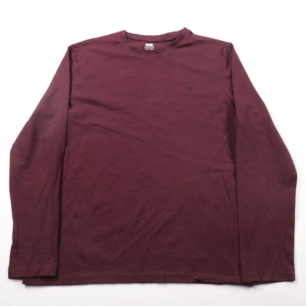 Мужской лонгслив F&F Lounge бордового цвета, лаконичный дизайн с небольшим логотипом на груди. Подойдёт для повседневной носки и как базовый слой в прохладную погоду. Практичен тем, что легко сочетается с джинсами и брюками и не требует сложного ухода.
