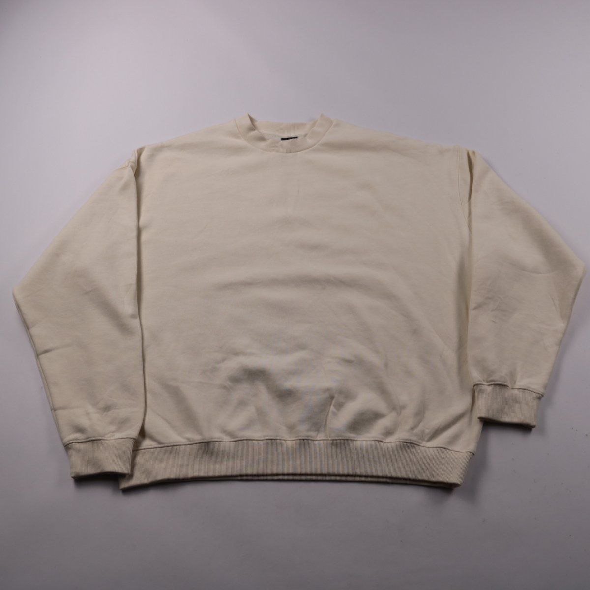Свитшот без бренда, однотонный, с круглым вырезом и манжетами на рукавах и по низу. Подойдёт для повседневной носки и базовых образов в прохладную погоду. Практичный светлый цвет легко сочетать с джинсами и спортивными брюками.