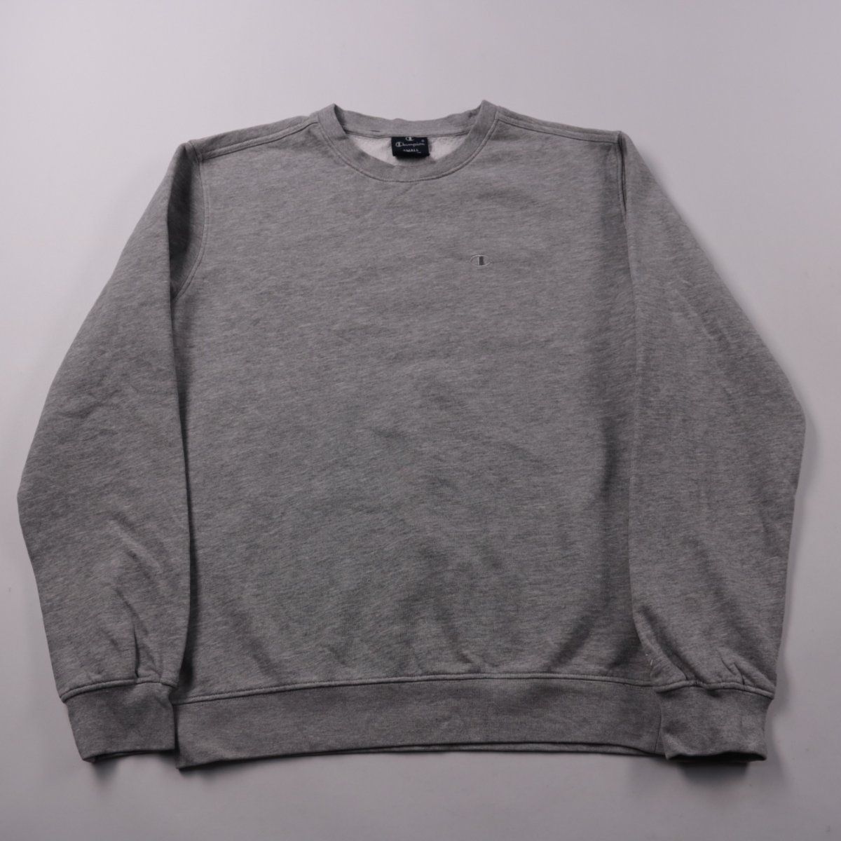 Мужской свитшот Champion серого меланжа с круглым вырезом и небольшим логотипом на груди. Подойдёт для повседневной носки в прохладную погоду и как второй слой. Практичен тем, что нейтральный цвет легко сочетать с джинсами и спортивными брюками.