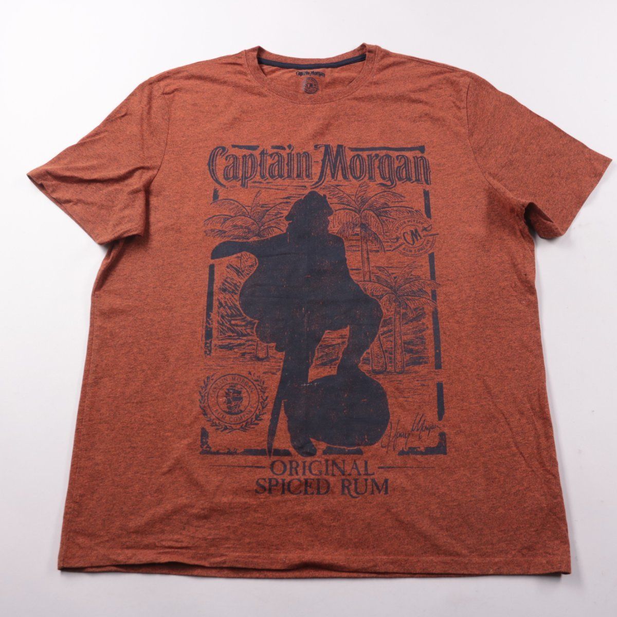 Мужская футболка F&F рыжего меланжевого цвета с крупным принтом Captain Morgan. Подойдёт для повседневной носки и отдыха, легко сочетается с джинсами и шортами. Прямой крой и мягкий трикотаж делают её удобной на каждый день.