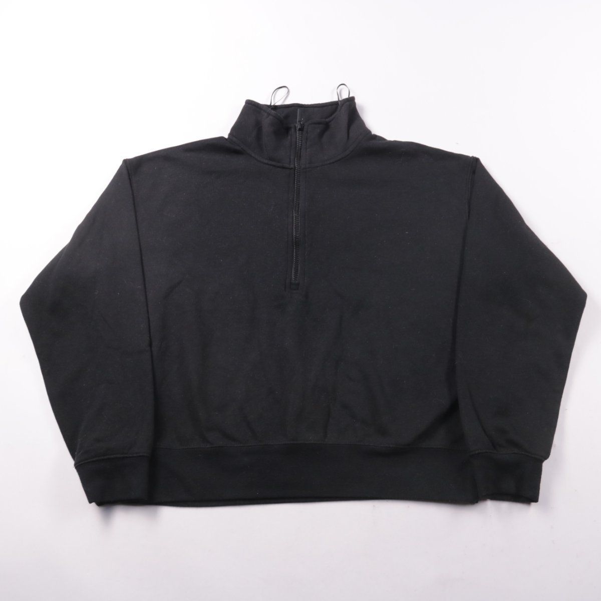 Свитшот Dunnes Stores чёрного цвета с короткой молнией и высоким воротником. Подойдёт для повседневной носки и как второй слой в прохладную погоду. Практичный плюс — легко сочетается с джинсами и спортивными брюками.