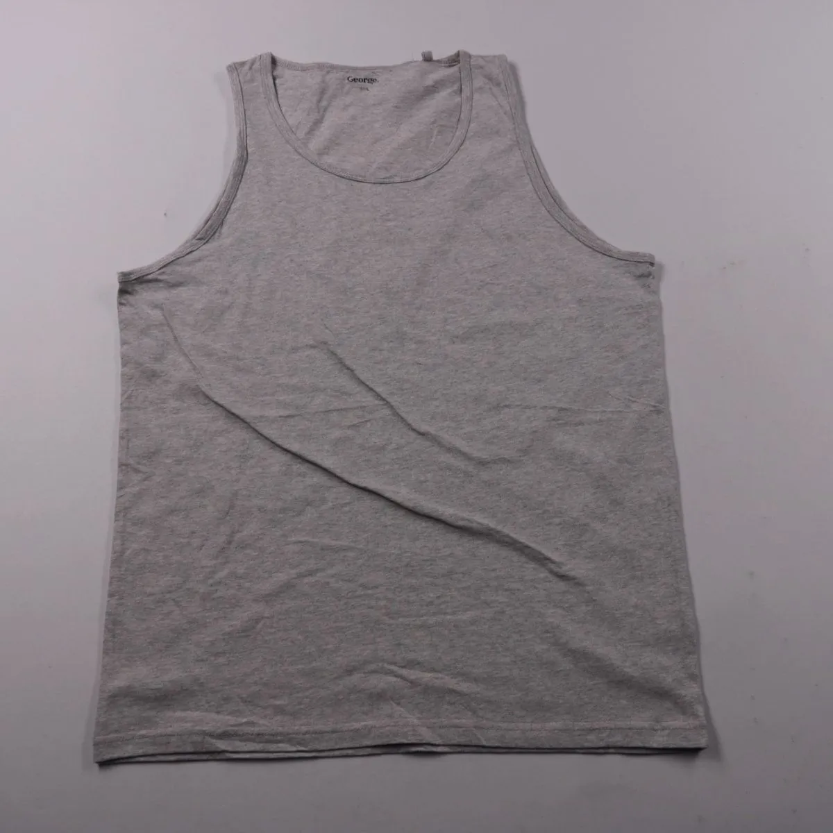 Мужская майка George серого меланжевого цвета, без рукавов и с круглым вырезом. Подойдёт для дома, сна или как нижний слой под рубашку/худи. Натуральный хлопок хорошо дышит и комфортен в носке.