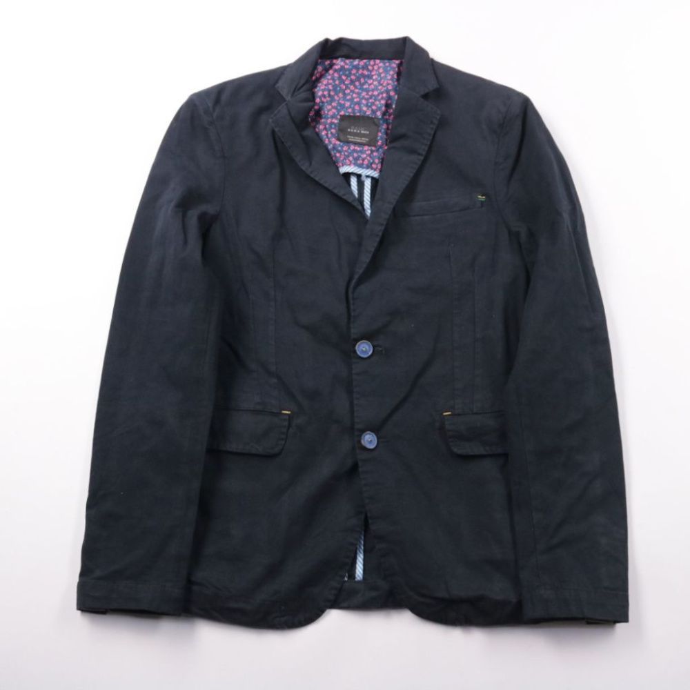 Мужской пиджак Zara Man (Basic) тёмно-синего цвета, приталенный крой, на двух пуговицах, с карманами с клапанами. Подойдёт для офиса, учёбы и повседневных образов в стиле smart casual. Ткань с хлопком и эластаном комфортно тянется и не сковывает движения.