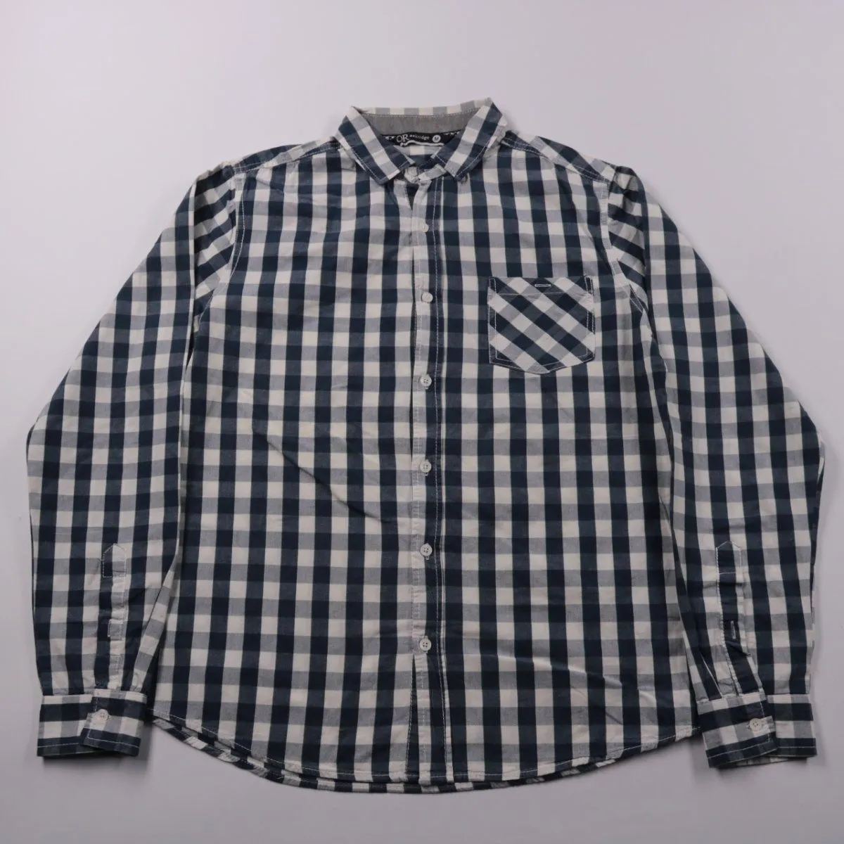 Мужская рубашка Oakridge в крупную клетку в сине-белых тонах, с длинным рукавом и нагрудным карманом. Подойдёт для повседневной носки и офиса в стиле casual, хорошо смотрится как самостоятельно, так и поверх футболки. Хлопковая ткань дышит и комфортна в течение дня.