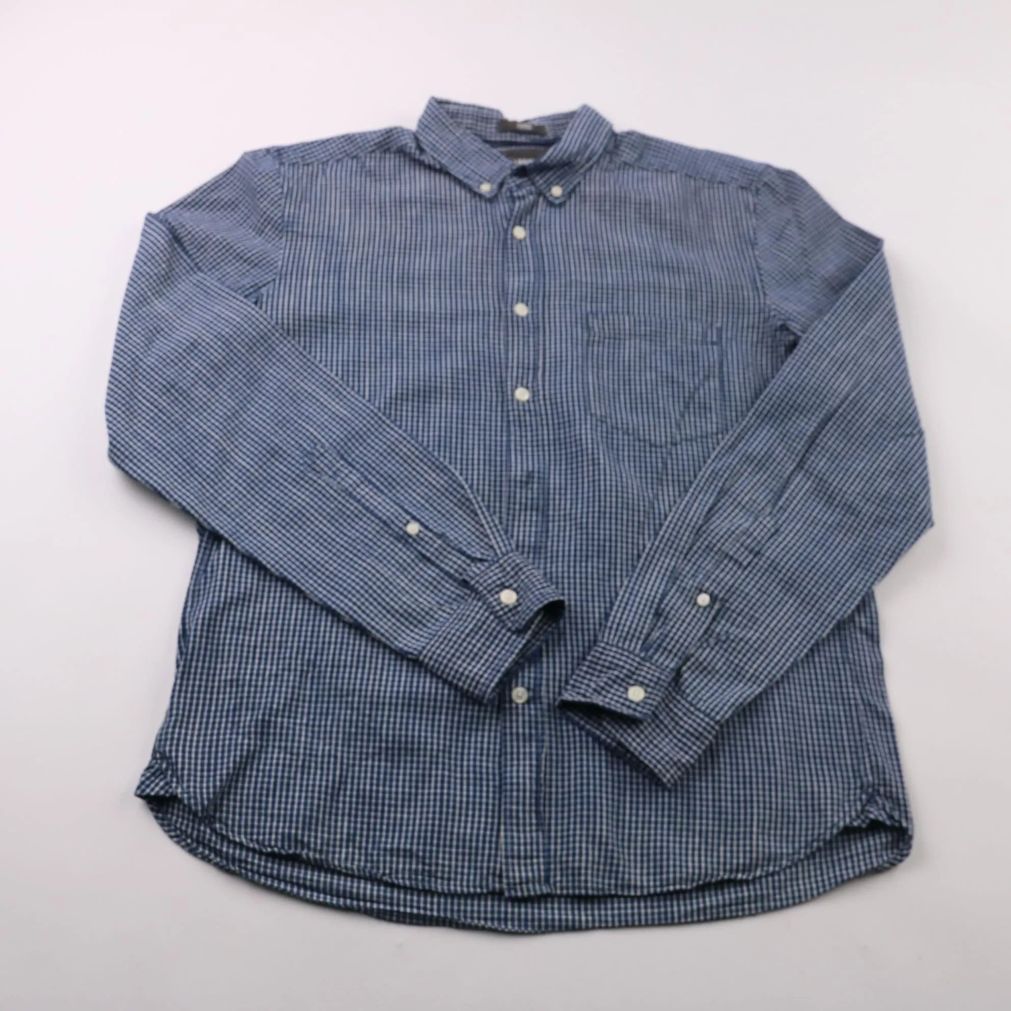 Мужская рубашка H&M L.O.G.G. в мелкую клетку, приталенный крой (Fitted) и воротник на пуговицах. Подойдёт для офиса в стиле casual и повседневных образов с джинсами или чиносами. Натуральный хлопок хорошо дышит и комфортен при носке.