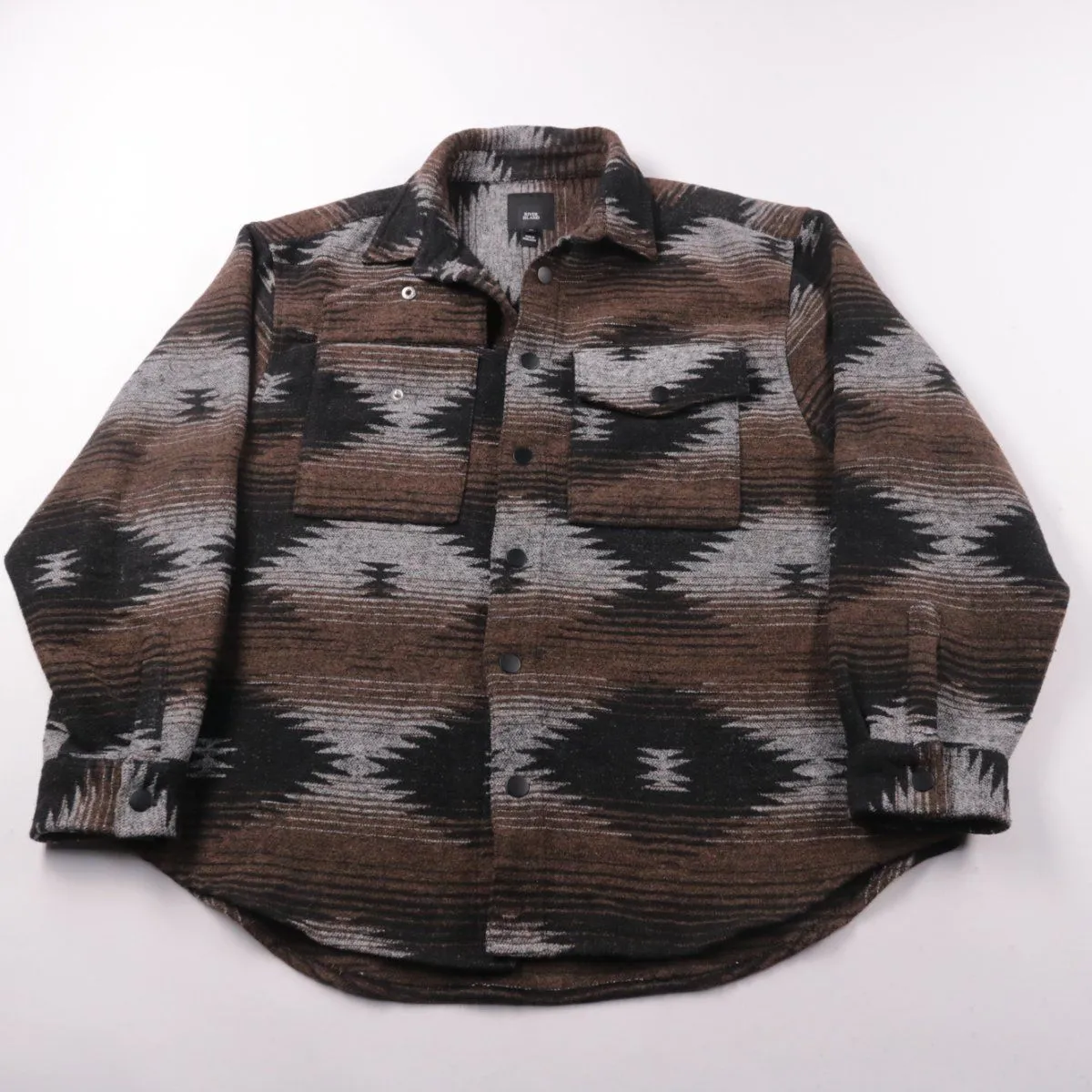 Мужская плотная рубашка River Island в формате overshirt на кнопках, с двумя нагрудными карманами и этническим принтом. Подойдёт для прохладной погоды и многослойных образов (как верхний слой поверх футболки/лонгслива). Практична тем, что ткань плотная и хорошо держит форму.